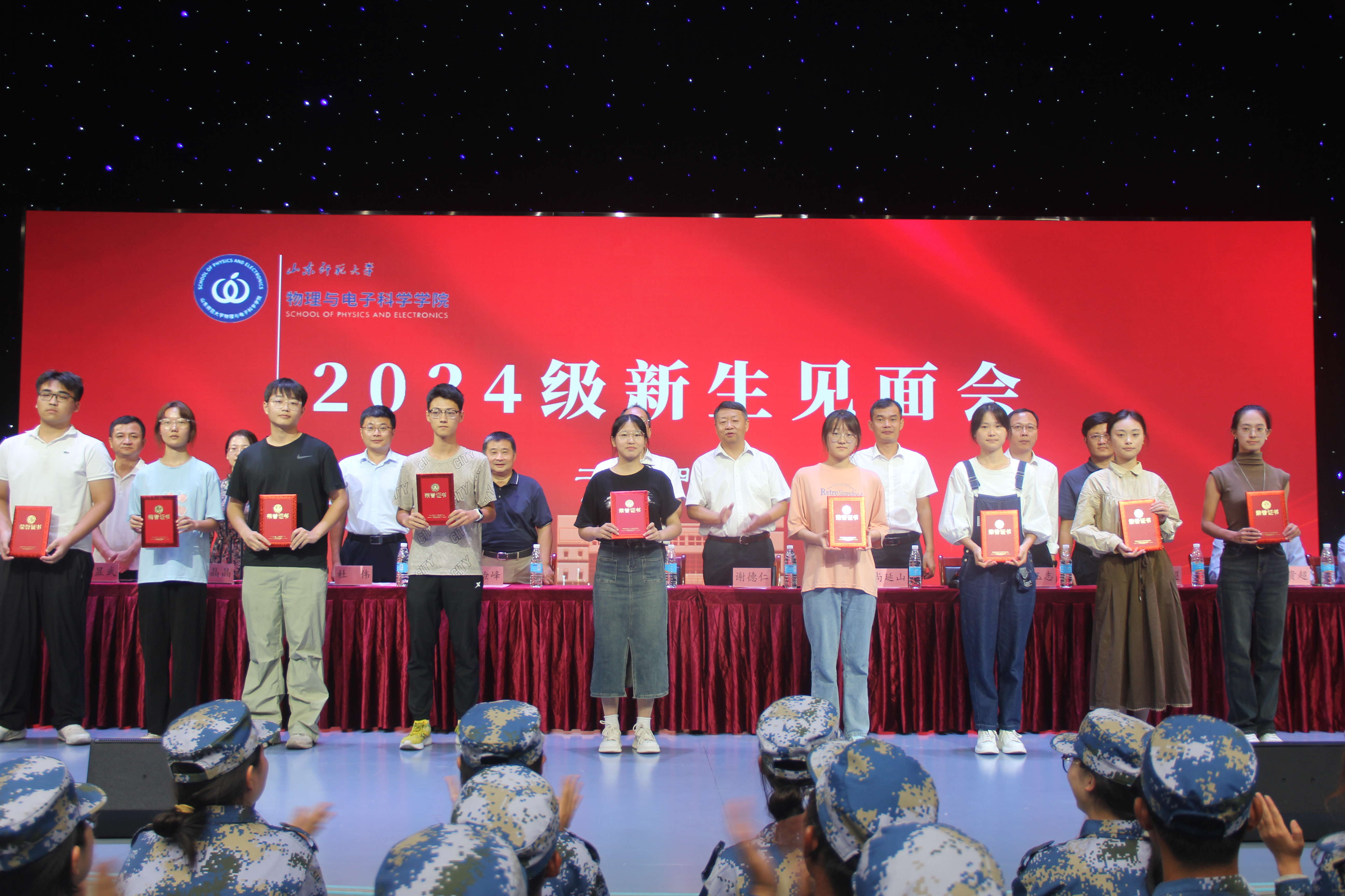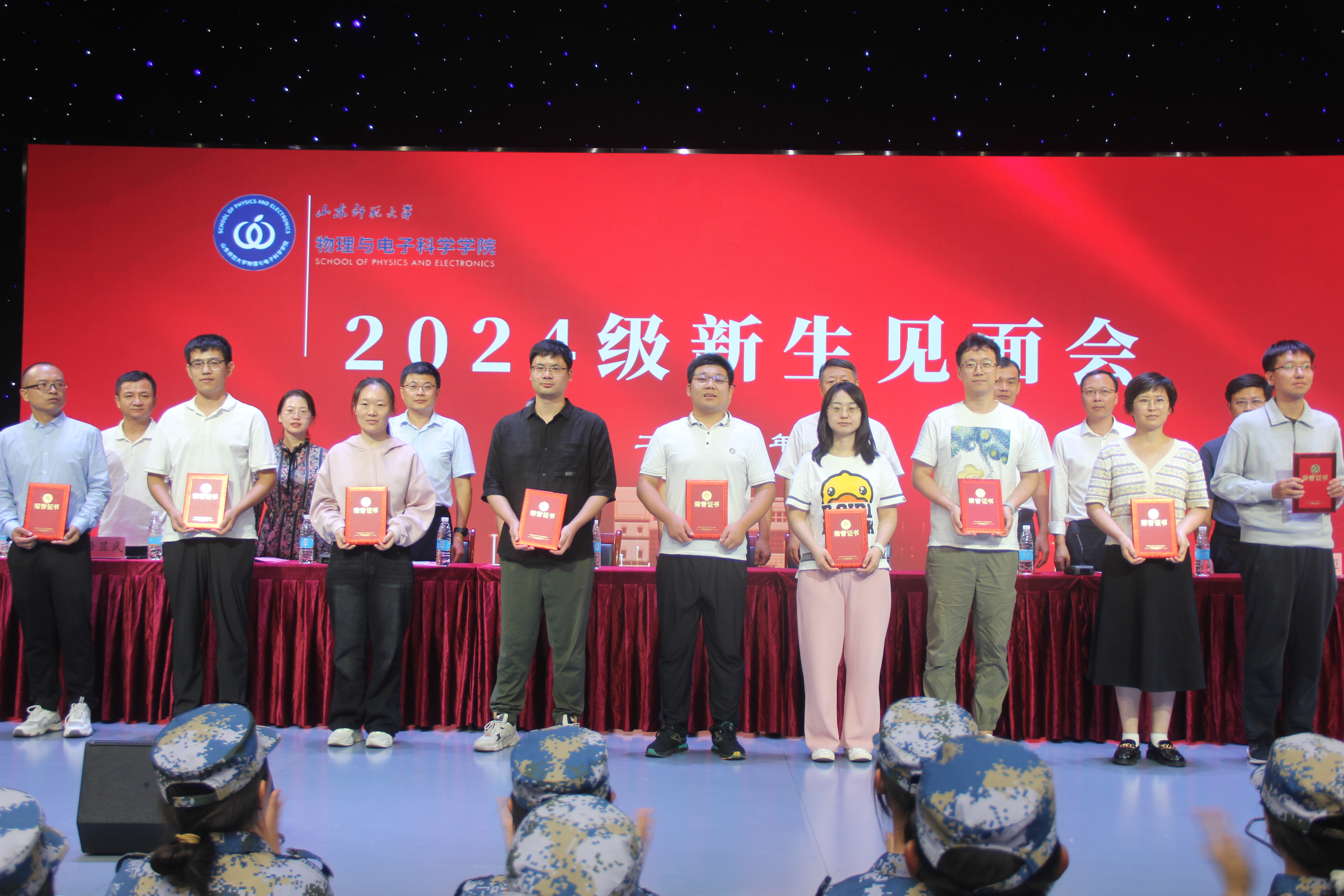 9月11日下午,物理与电子科学学院2024级新生见面会在长清湖校区文浚楼演播大厅举行。山东师范大学副校长、学院院长蔡阳健,院党委书记谢德仁,学术院长陈险峰,组织部正处级组织员尚延山,副院长宋玉志、王晶晶,学术副院长张超,工会主席修显武,物理系主任胡贵超,电子系主任宋蓬勃,学工办主任、团委书记方芳出席会议。见面会由党委副书记杜伟主持,全体辅导员,新生班主任,班级导航员,2024级全体本科生、研究生参加。