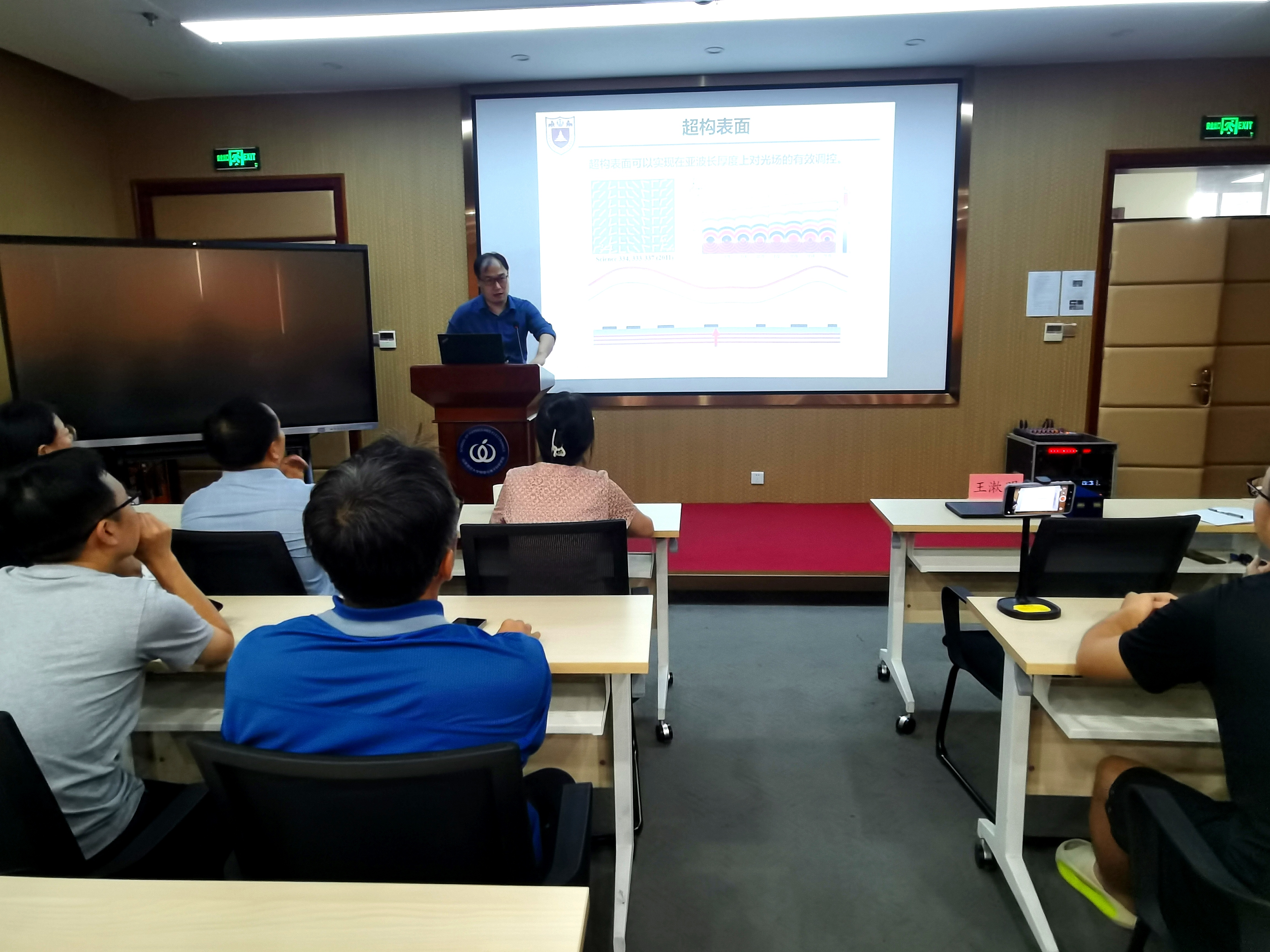 王漱明教授从超构表面消色差成像、超构表面光谱成像、超构表面偏振成像、超构表面新器件四个方面开展此次报告。他在本次报告中详细讲解了利用相位拆分原理在超构表面体系实现宽带连续消色差的方法。王教授还介绍了其团队所研究的基于超构透镜阵列的快照式光谱光场成像、基于超构表面的彩色路由成像系统以及基于超构表面-折射的高效可拓展逆射器等科研成果。在报告最后,王漱明教授介绍了南京大学固体微结构物理国家重点实验室以及南智先进光电集成技术研究院公共光电集成平台,阐述了其核心工艺与技术以及研发方向。报告结束后,王漱明教授对在场师生所提出的问题,进行了耐心详细的解答,并讨论了未来与我校的合作交流,深化了此次学术交流的广度与深度。