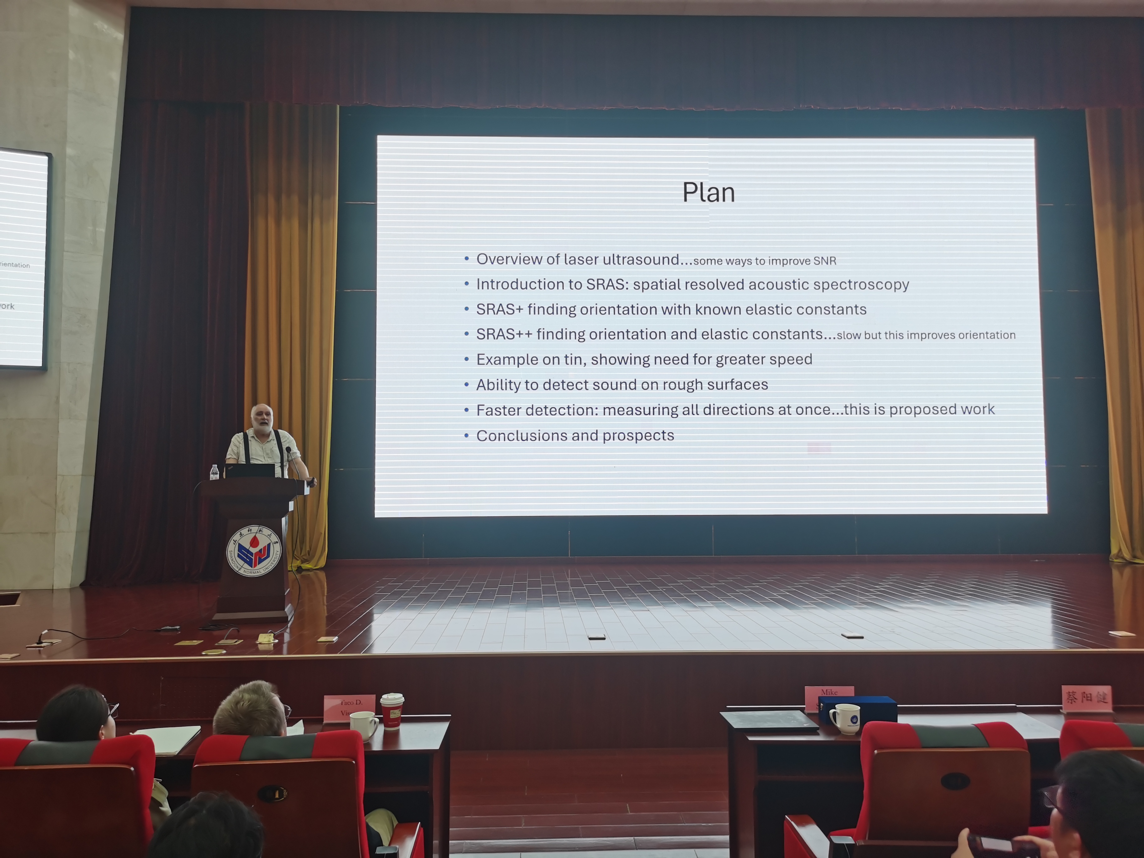 Somekh Michael Geoffrey作题为《Quantitative Laser Ultrasonics》(《后期定量超声学》)的学术报告。他概述了激光超声波在颗粒和材料纹理成像研究领域的应用原理,阐明了激光超声波的优缺点,并进一步介绍了该领域的最新研究成果。基于测量材料的晶粒取向和弹性性质的可能性,Somekh Michael Geoffrey给出其纹理和成分信息,并讨论了电子背散射衍射技术的应用前景。报告结束后,Somekh Michael Geoffrey教授与部分现场师生进行了交流互动,对师生提出的问题进行了耐心详细的解答,深化了此次学术交流的广度与深度。报告受到师生热烈欢迎。