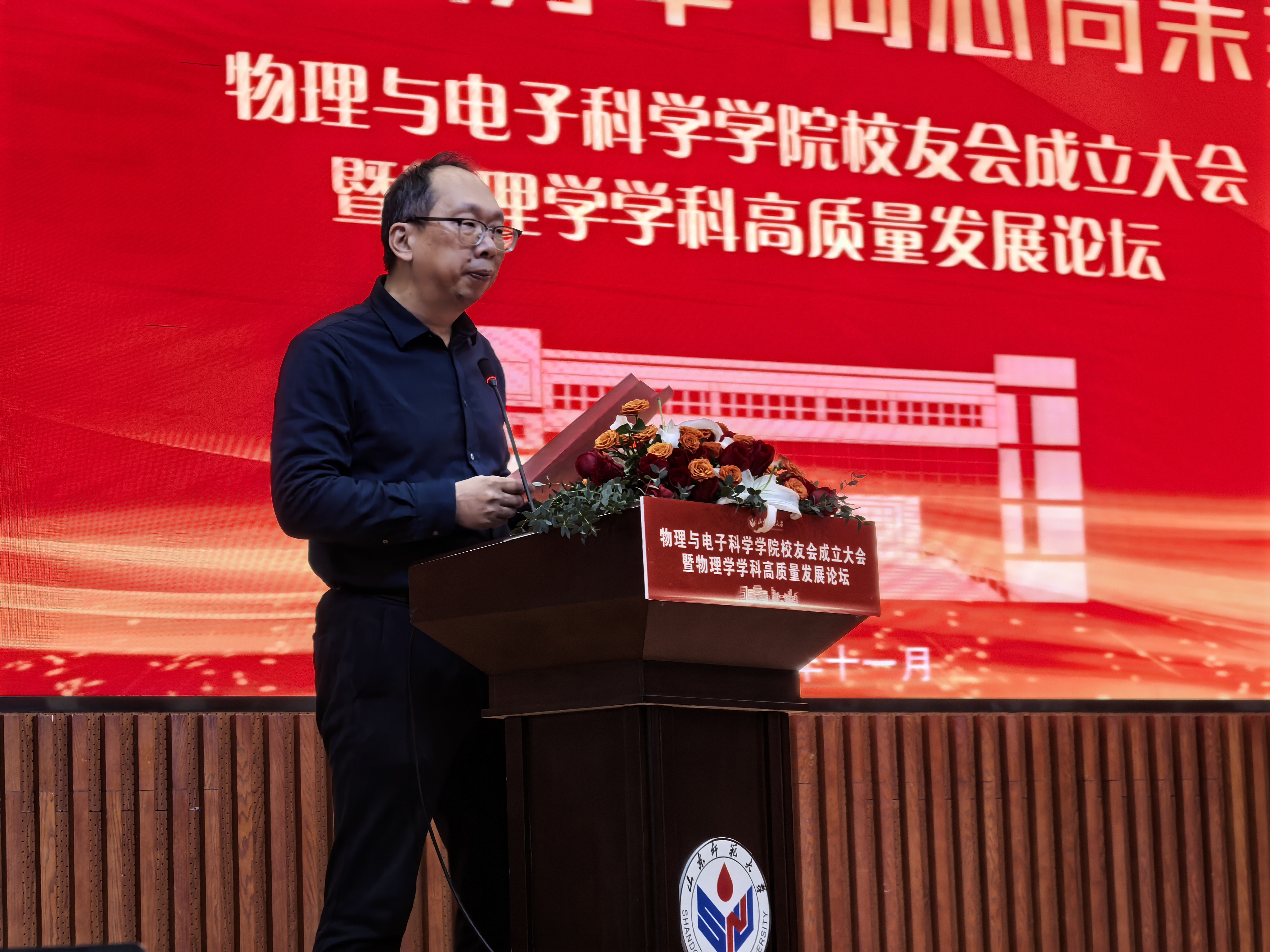 新当选的物理与电子科学学院校友分会会长蔡阳健致辞,从搭建沟通合作平台、学院学科建设、人才培养等多维度,提出了母校和校友“外塑形象,内塑精神”的发展核心。周珊珊代表学校对会议的召开表示热烈祝贺,向校友们介绍了学校的基本情况,充分肯定物电学院发展的蓬勃态势和优秀的办学成就,希望学院全面加强校友的联系与服务,发挥好桥梁纽带作用,构建共同发展的平台。会议结束后,校友们一同参观了学校办学成就展,共同感受母校发展的光辉历程与卓越成就。