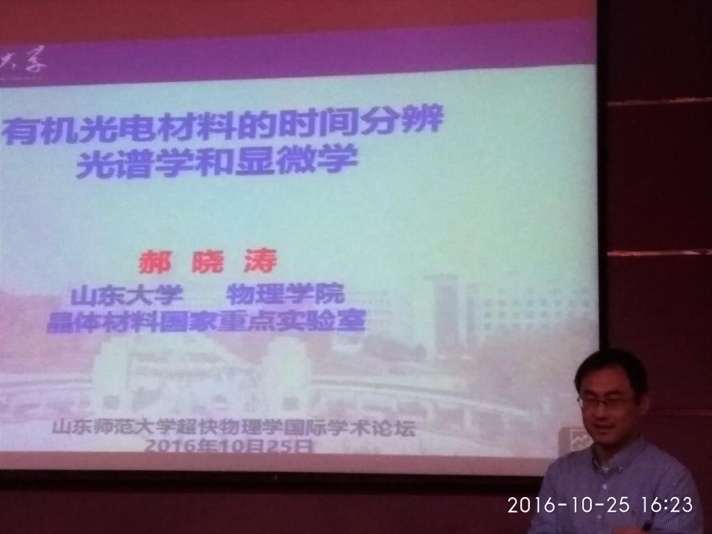 山东大学郝晓涛做题为“有机光电材料的时间分辨光谱学和显微学”的学术报告