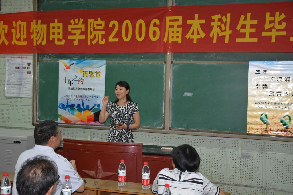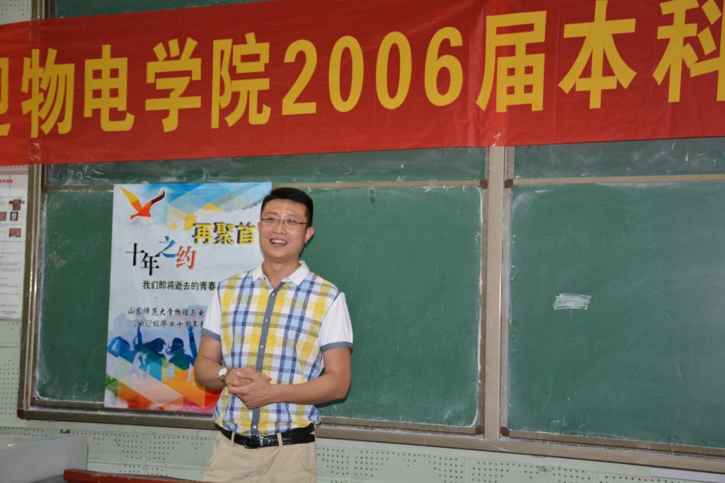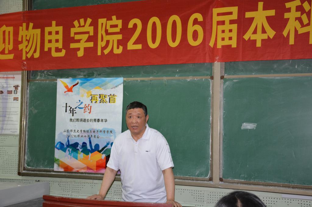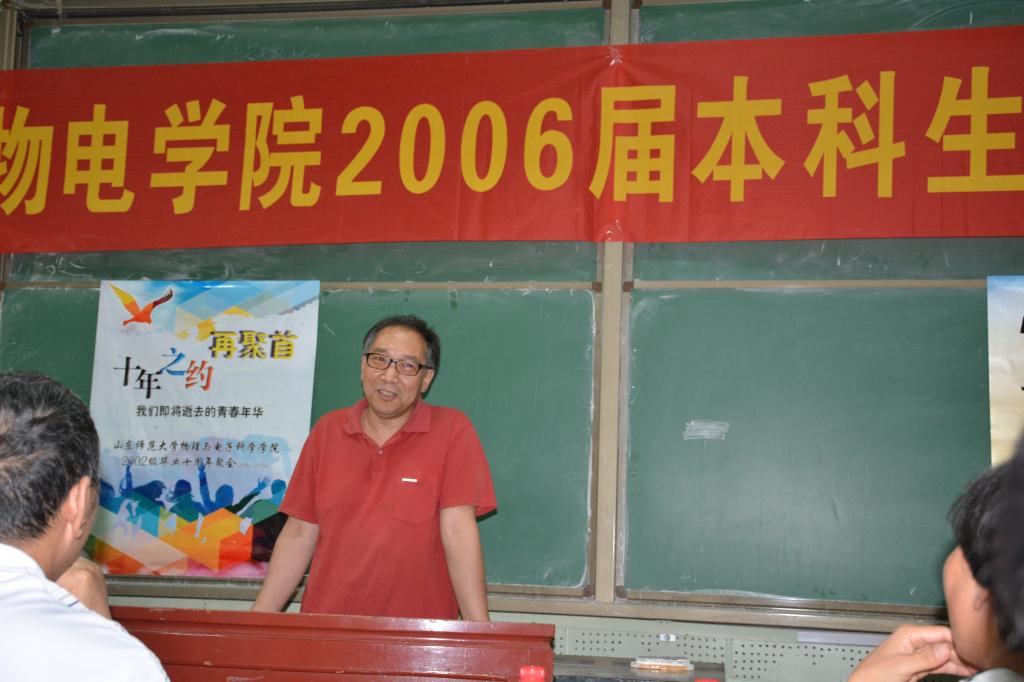7月16日,物理与电子科学学院2002级校友庆祝毕业十周年暨回访母校活动在千佛山校区二号教学楼举行。物电学院党委书记胡桂香,院长程传福,副院长王春兴,2002级辅导员黄春霞及部分任课教师代表出席了庆祝活动。2002级60多名校友参与了这次活动。