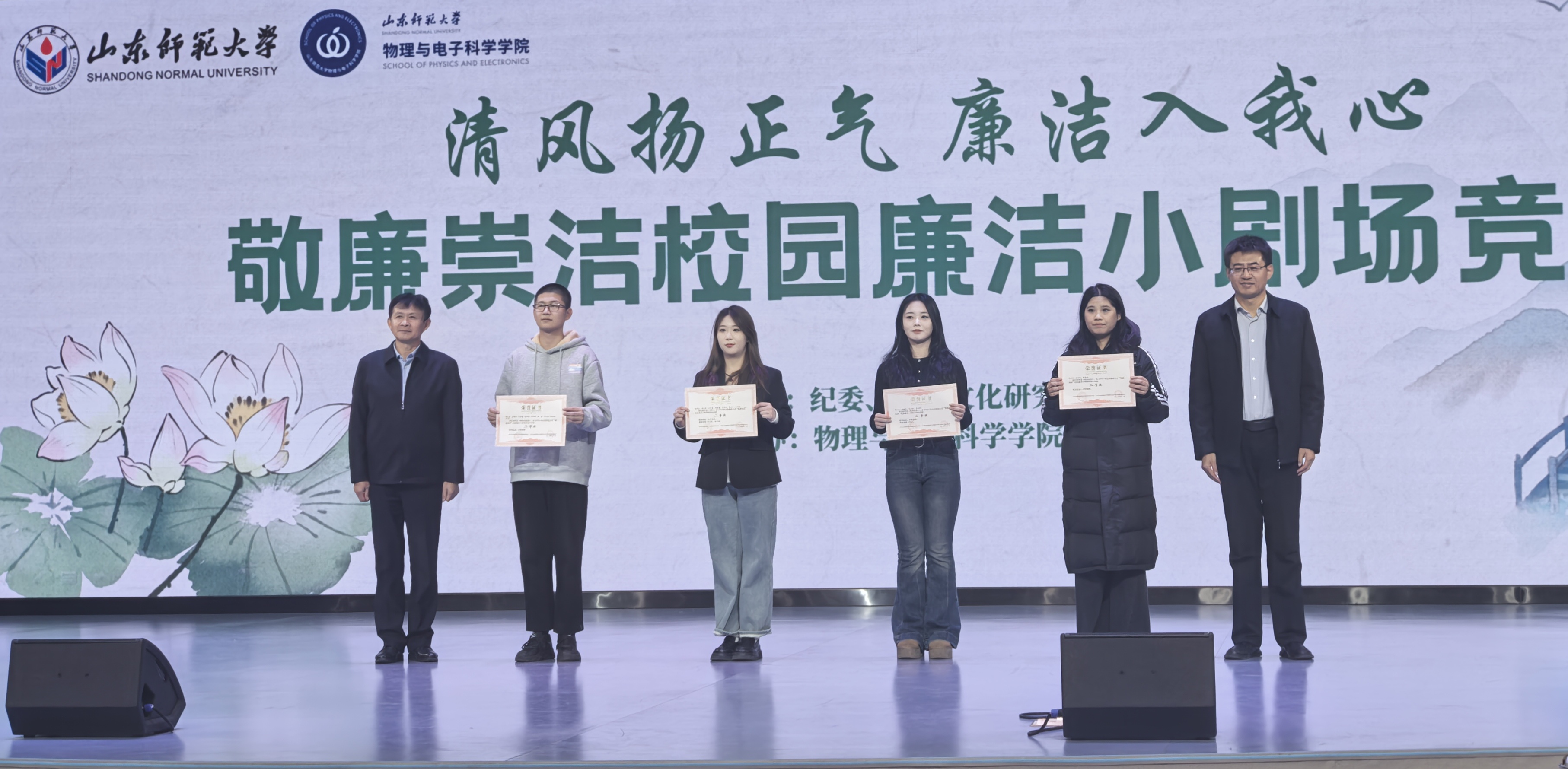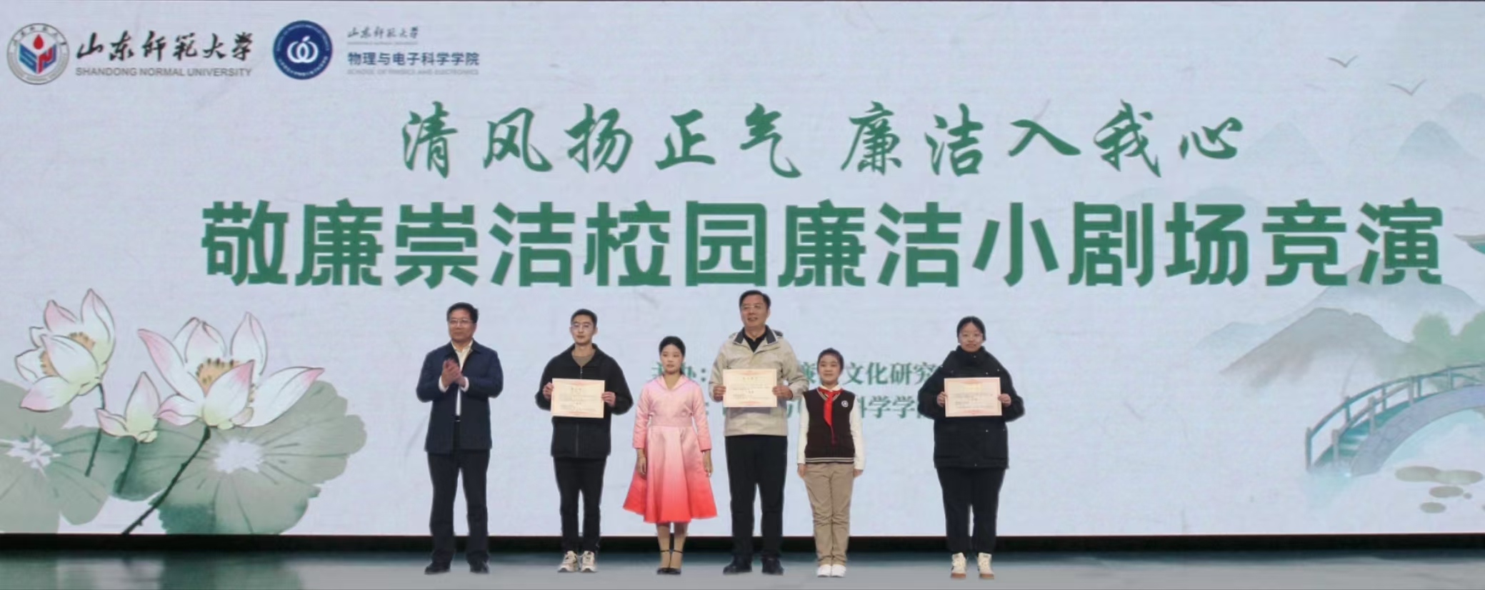 11月28日下午,由山东师范大学纪委和廉洁文化研究中心主办,物理与电子科学学院党委承办的“清风扬正气,廉洁入我心”敬廉崇洁校园廉洁小剧场竞演决赛在长清湖校区文浚楼演播大厅举行。校党委常委、纪委书记,省纪委监委驻山东师范大学纪检监察组组长袁荣开出席活动。学校纪委、宣传部、研究生院、学生工作部、团委及部分学院负责同志与现场观众一起观看了竞演决赛。