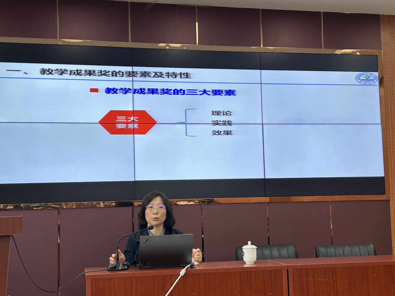报告会上,王霞副校长从教学成果奖的要素及特性、申报书撰写策略、申报注意事项三个方面展开,结合自身丰富的申报和评审经验,就教学成果奖的政策背景、选题策略、申报要求、材料凝练等多方面取得的成绩和经验进行了分享和交流。会后,王霞副校长就教师代表在教学成果奖申报过程中发现的痛点难点堵点问题,进行了针对性的解答。