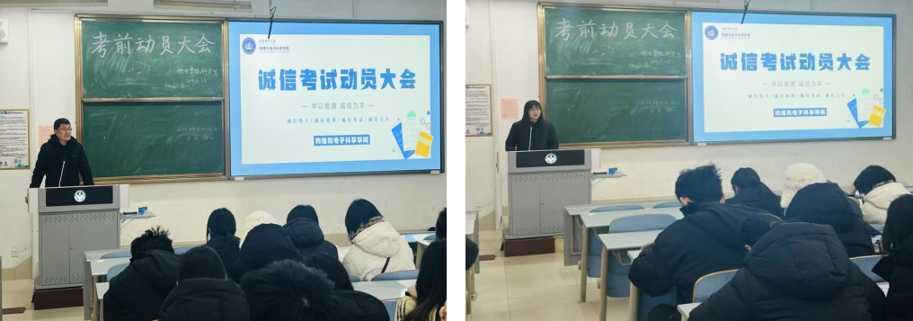 近日,物理与电子科学学院精心筹备并组织了考前诚信教育系列活动,覆盖学院本科生、研究生各班级,引导学生严格遵守学校的考试纪律,自觉签署《诚信考试承诺书》,实事求是,共同营造诚实守信、风清气正的校园考试氛围。