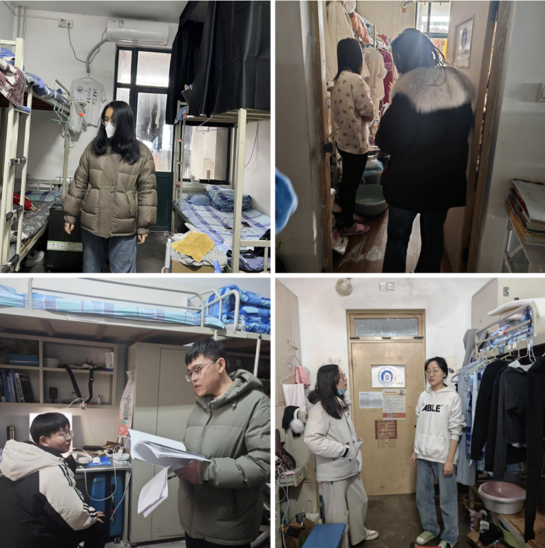 此次走访重点排查了解了学生宿舍消防设备、电器使用、床铺是否牢固等安全隐患和环境卫生情况,并对存在安全隐患的宿舍进行整改。杜伟强调安全工作无小事,叮嘱同学们要保持防患于未然的状态,并鼓励同学们养成良好的生活习惯,共同营造干净舒适的生活环境。