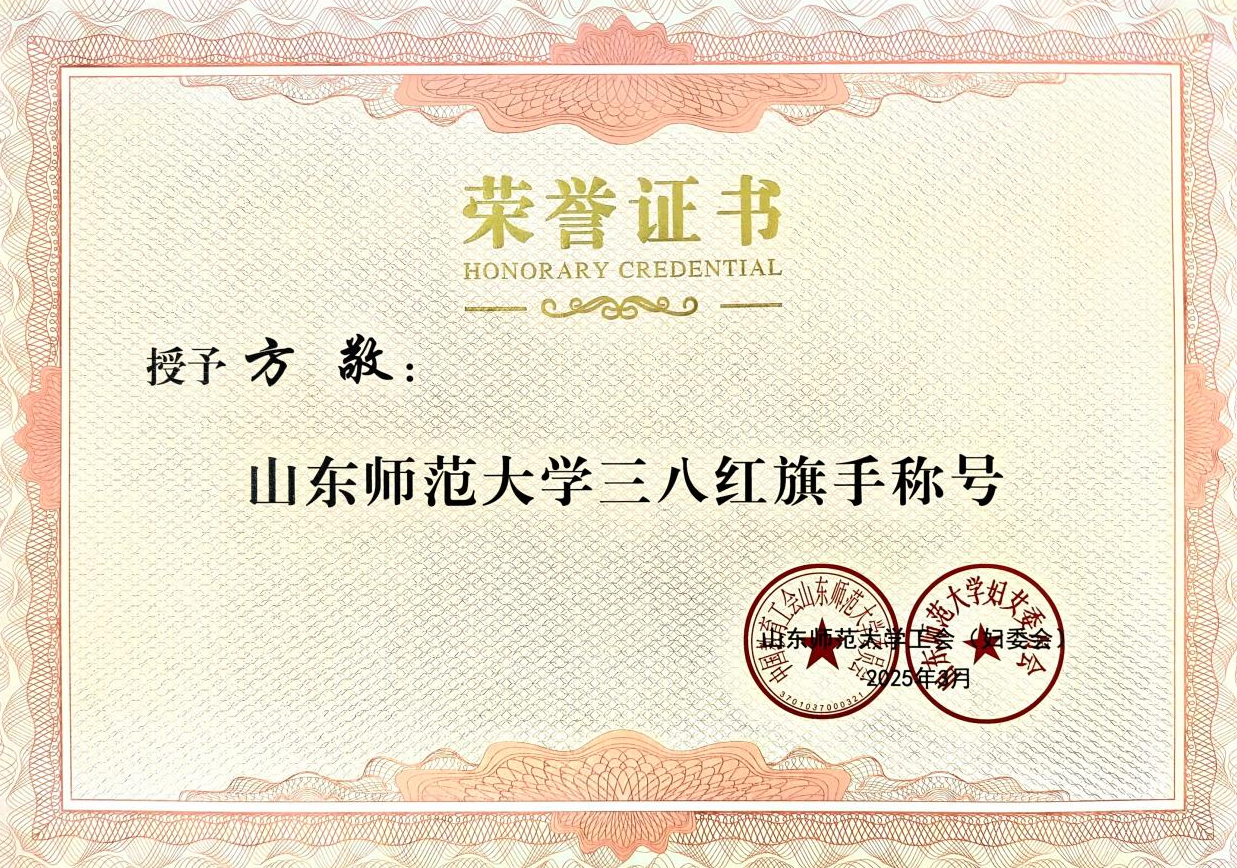 3月7日,山东师范大学发布《关于表彰2023-2024年山东师范大学三八红旗手标兵、三八红旗手和三八红旗集体的决定》,物理与电子科学学院团委被授予“三八红旗集体”殊荣,方敬、方芳两位教师荣膺“三八红旗手”荣誉称号。