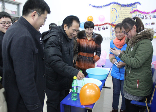 活动现场张灯结彩,处处欢声笑语,人头攒动,洋溢着节日的喜庆氛围。整个B区三楼成为了游戏的殿堂,每个教室都有同学们精心设计的游戏,以及丰厚的奖券奖励。游戏形式多样,同学们玩的不亦乐乎,既有“对对联”等传统游戏,又有“我是记忆王”、“脑洞大开”等知识问答类智力游戏,让同学们在游戏的同时活跃了思维,储备了新知识,也体验了乐趣,放松了身心。其中,“我爱寻宝”游戏,以每组两人,两小组一起PK的形式,通过夹豆子、你划我猜、听歌接词等环节考验了同学们的默契程度,同学们在收获快乐的同时增进了友谊,促进了彼此的交流。此外,“听歌接唱”的活动现场异常火爆,同学们根据歌曲的旋律,然后接唱,一展歌喉,也吸引了外国友人前来互动游戏。最后,领导们对学生们表达了亲切的慰问并希望同学们在新的一年勇立潮头,争创佳绩,同时祝愿学校各项事业蒸蒸日上,再建新功!同学们感谢领导的关怀和殷切期望,满怀期望地迎接2016年的到来。
