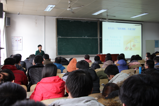本次动员大会由万金凤主讲。会议以“做人自强,考试诚信”为主题,着重强调考风考纪。古人云,“没有规矩,不成方圆”,万金凤旁征博引,列举了各种意义深刻的小故事,指出考试就是一架天平,它不仅是检测每一位学生对所学知识掌握情况的重要途径,也是衡量每一位学生人品的标准。随后,万金凤向同学们提出“早动手,早准备,抓紧复习,考出水平”,通过身边的事例总结出作弊现象的三个原因——贪婪、攀比、侥幸,并讲解了关于作弊等一系列违纪行为的处罚措施,告诫同学们要严于律己。良好的考风是优良校风、学风的重要体现,纪律是对自己行为的约束,同时也是对大家进行公平考核的保障。万金凤提出了几点考试要求及注意事项,并对同学们寄予了深厚的期望。在结束报告后,杜军老师针对近期修订的学院研究生综合素质测评办法、实施细则等相关文件带领大家进行了学习,提出了实验室及宿舍安全管理等方面的相应要求。