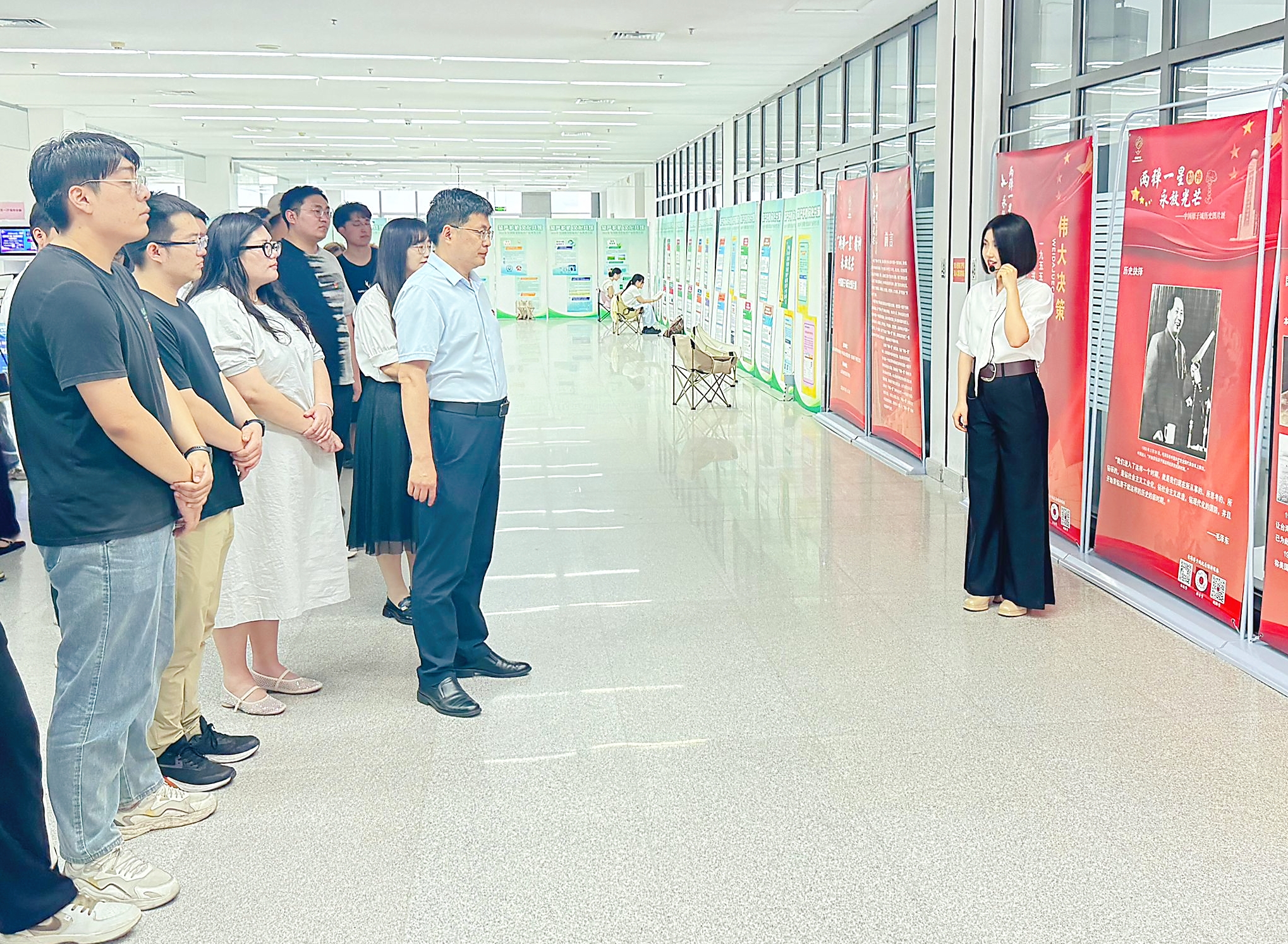 5月30日,物理与电子科学学院研究生党支部赴图书馆开展“两弹一星”精神主题党日活动。学院党委副书记杜伟,研究生辅导员刘亭、张雨辰带队,全体研究生党员参加。
