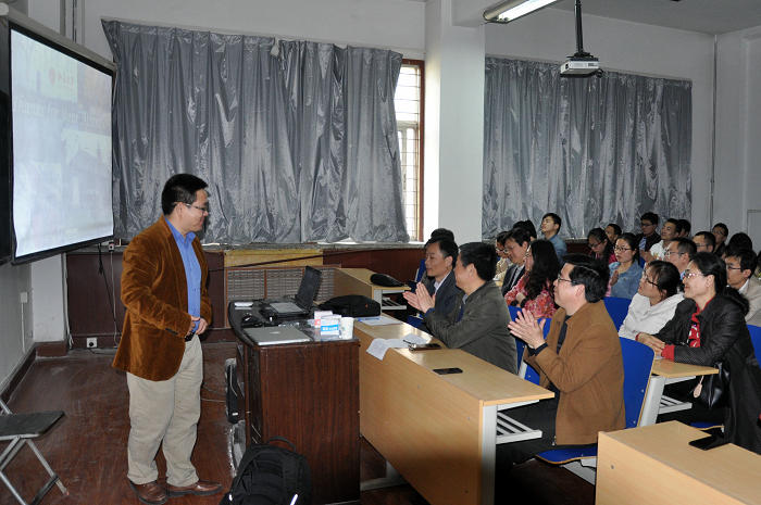 应物理与电子科学学院王传奎院长的邀请,北京大学物理学院彭良友副教授于4月17日下午对我院进行了访问,并以“少电子原子分子体系在激光场中的动力学”为题在千佛山校区实验楼0206教室举行学术报告会,介绍其研究小组近年来在激光场与少电子原子分子体系相互作用等方面的理论研究进展,包括电离阈值以下高次谐波产生机理、低能区的阿秒条纹相机及氦原子和氢分子的双电离过程等,为我院师生展示了原子分子体系在强飞秒激光场中一系列新奇的物理现象,并热情回答了师生所提出的问题。报告会由物理系主任孟庆田教授主持,王传奎教授及其他研究生导师和学生听取了报告并与彭良友进行了交流。