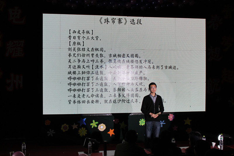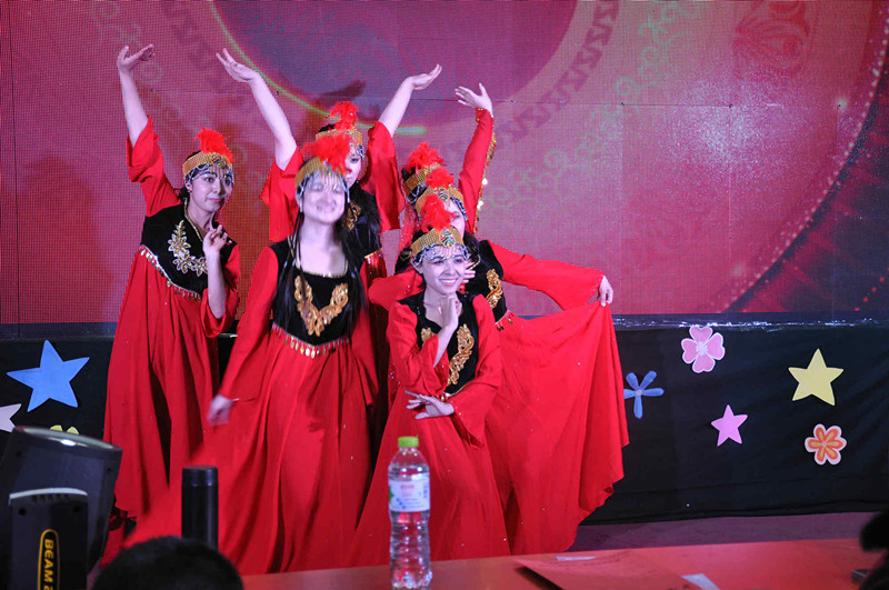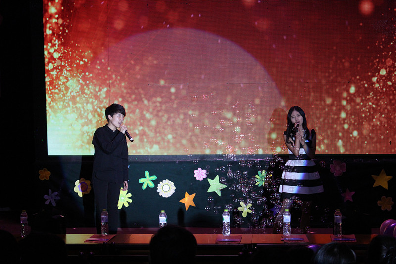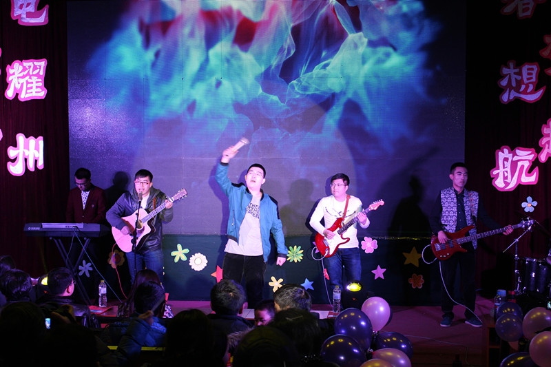 晚会以一段精彩的学生“快闪”视频开启。紧接着,乐队歌曲《蓝莲花》绚丽开场,强劲的鼓点、爆发式的嗓音点燃全场气氛,至此晚会正式拉开帷幕。各种节目轮番登场,涵盖歌曲、舞蹈、小品、乐器演奏等多种艺术表现形式,异彩纷呈,魅力四射。歌曲串烧延续火辣的开场表演,《热情的沙漠》伴着铿锵的节奏,浑厚的嗓音加上独特的舞台效果使现场气氛逐渐升温;《你的眼神》、《我好想你》伴着悠扬的音调,在灯光效果的衬托下,吹来一阵清新之风;《第一天》节奏欢快,俏皮生动,赢得了阵阵掌声。其中,舞蹈串烧也同样引人入胜,急促而富有动感的节奏型爵士舞和具有很强健身效果的popping精彩碰撞,给观众们带来了无与伦比的视觉冲击,令人啧啧称赞。西域风情的新疆舞《一起跳吧》也令观众印象深刻,6名新疆女生婀娜的身姿尽态极妍,美丽的笑脸甜美可人。语言类节目也是毫不逊色,小品《大腕儿来袭》妙语连珠、惟妙惟肖,生动展示了当代娱乐圈的真实写照。小品《今天的幸福》寓教于乐,全场爆笑连连,让观众明白了幸福其实很简单,要多想想自己有什么,引发了全场潮水般的掌声。另外,由研究生带来的歌曲《魔力》和《找自己》,大气婉转的演唱,绚丽唯美的画面引起观众听觉、视觉、心灵上的共鸣。晚会还设有微信墙、微博墙,同学们纷纷留言祝福,现场洋溢着温馨的气氛。老师们的精彩表演更是为晚会增添亮点。2013级辅导员方芳和2014级辅导员王东磊倾情演唱,令观众如痴如醉。学院教工带来的《山楂树》令同学们感受到老师除了严谨治学之外的另一面,拉近了老师与同学的距离。由学院教师袁琦带来的京剧《珠帘寨》恢弘大气,体现古韵芳华,充分展现了中国传统文化的独特魅力。整个晚会high翻全场的是由学生会主席团、各部部长带来的雷人舞,台上台下成了一片热情洋溢的海洋。最后晚会在合唱《爱》与主持人的真挚闭幕致辞中圆满落下帷幕。