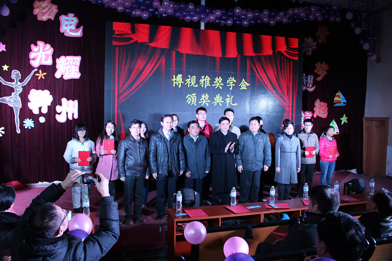 本次晚会共有大学生学术科技节闭幕式、博视雅奖学金颁奖典礼、物电好老师颁奖典礼、迎新生庆元旦文艺晚会四项活动内容。LED屏视频展现了学院在“大学生学术科技节”的盛况,鼓励同学们继续努力创造辉煌。唐波、向来生、王焕斌、陈实、胡桂香、王传奎分别给获奖老师和同学颁奖。