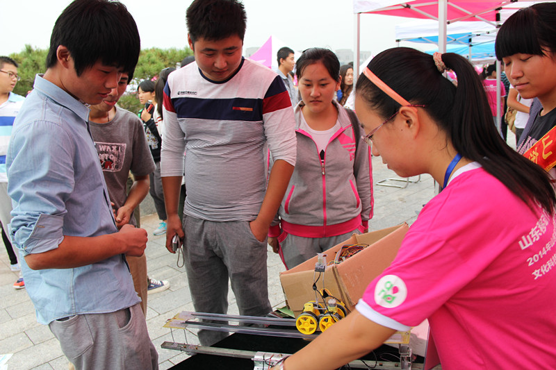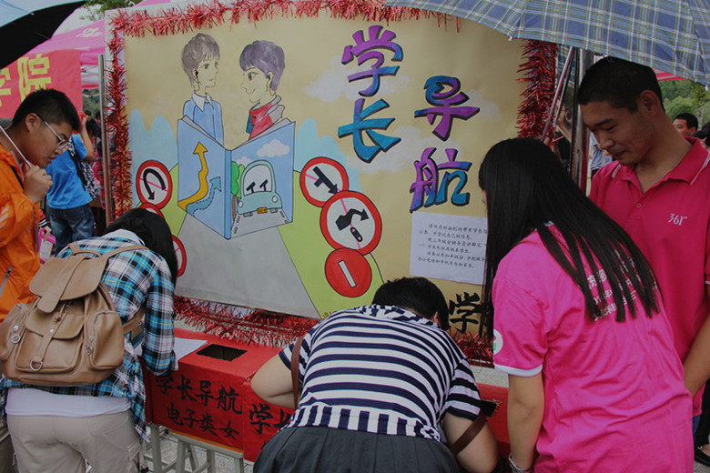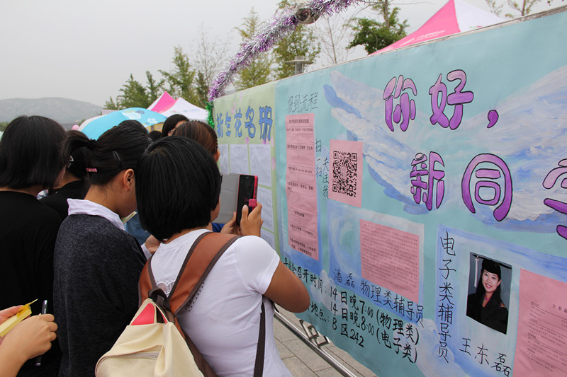 早上五点半,学院学生会成员和迎新志愿者们便早早地来到天颐广场开始了准备工作,七点一刻迎新正式开始。首先,新生们被等候在校门口的志愿者领到新生报到处,按照流程完成报到。接着,新生们来到学长导航处抽取学长学姐的名字,这些经过学院选拔出的优秀学长学姐今后将在生活和学习上给予新生无私的帮助。“学长导航一帮一”活动是团总支发起的,通过学长与新生一对一的方式,帮助他们完成从高中到大学的过度,顺利开始大学生活。对于这一活动,新生家长们均表示大力支持,临沂新生冯天时的家长说,学长导航活动解决了新生刚入学时的诸多问题,让物电学院的新生切实地感受到了领导关怀与学校温暖。除此之外学院还推出了学院科技展和超大学生证活动,新生们带着惊喜的神情好奇地参观着制作精巧的四旋翼飞行器、履带小车和金属探测器等科技作品,对于物理电子科技有了更进一步了解,对接下来的物理学习也有了更大的信心。最后,新生们在超大学生证前签上自己的名字后合影留念,见证自己正式成为山师大的一员。