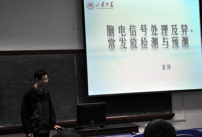 应物电学院的邀请,山东大学袁琦、杨晓晖两位博士生于3月28日来我院在教学二楼2215教室分别做了题为“脑电信号处理及异常发放检测与预测”和“基于深度信息的立体视频帧率提升算法研究”的学术报告。报告会由电子系主任杨济民教授主持。物电学院部分老师和研究生听取了报告。与会老师和同学就相关问题与袁琦、杨晓晖进行了更加深入的讨论。