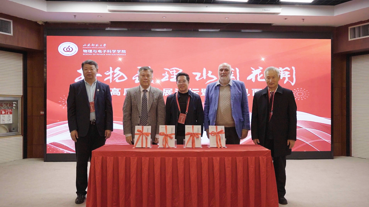 活动现场,山东师范大学原副校长王传奎、英国皇家工程院院士Michael Geoffrey Somekh教授、欧洲科学院院士袁小聪教授、校友代表李增足教授等为《山东师范大学物理学学科发展史》新书揭幕。这部发展史系统梳理了物理学学科数十年来砥砺前行、厚积薄发的奋斗历程,是对过往辉煌的总结,更是迈向未来的新起点,令在场校友倍感自豪与鼓舞。揭幕仪式后,1982级校友、聊城职业技术学院原院长徐龙海登台,深情分享了其在母校求学的美好时光与人生感悟,表达了对学院栽培的感激之情和对未来发展的美好祝愿,引起了广泛共鸣。