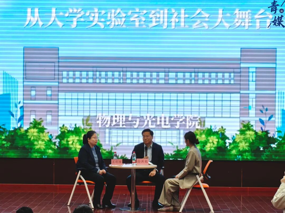 4月2日下午,物理与光电学院第二期“青春物语”校友谈活动在长清湖校区树蕙堂举行。活动特邀1996级本科生校友、德州市工业和信息化局长孙洪魁,2005级研究生校友、山东省环保发展集团绿碳科技咨询业务部部长王彩雁重返母校,以“从大学实验室到社会大舞台”为主题,围绕“迷茫与选择”“软实力培养”“物理思维迁移”等话题,与在校生展开了一场真诚、深入且充满启发的对话。学院党委副书记杜伟与师生200多人参与活动,校友谈由本科生刘业锦主持。