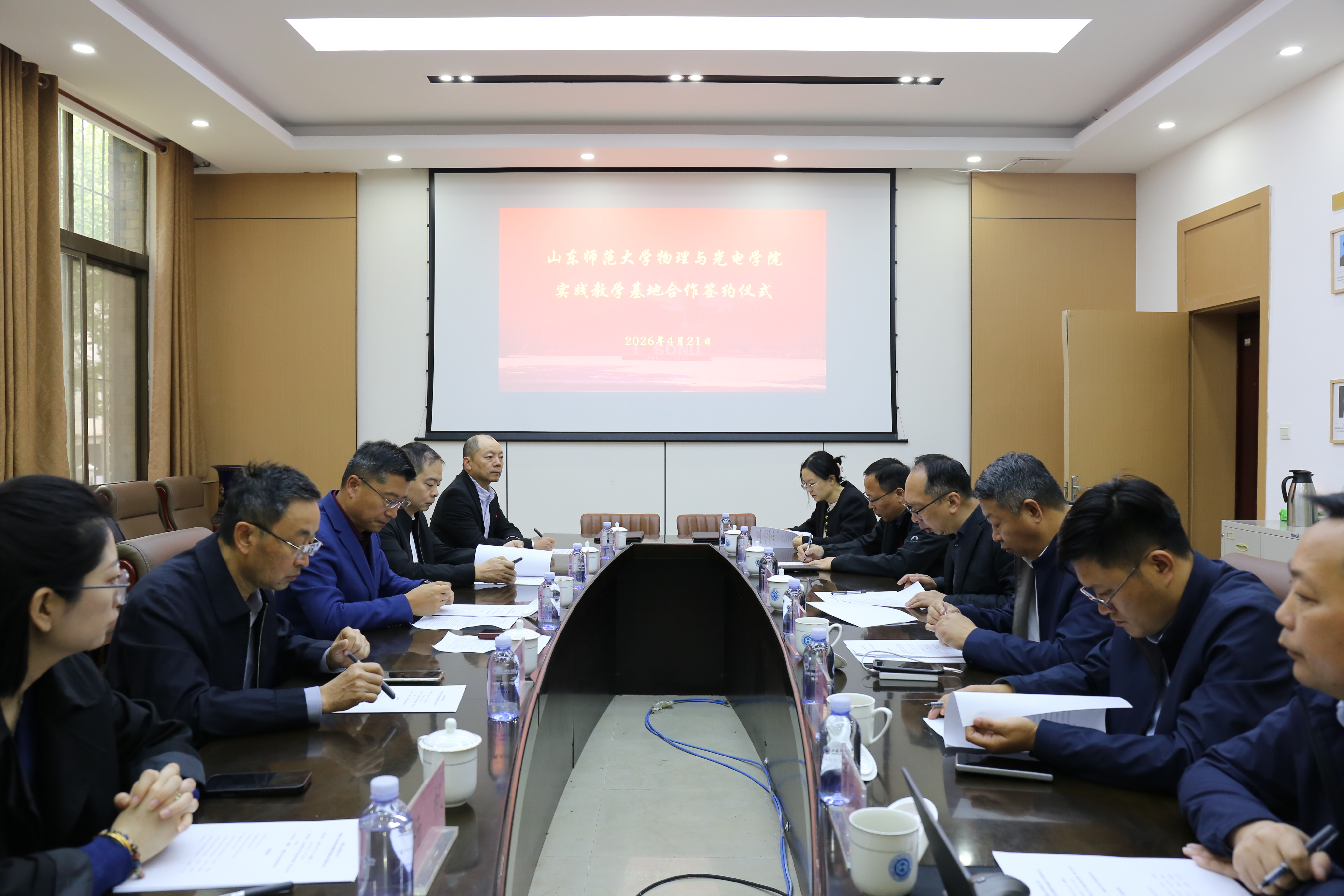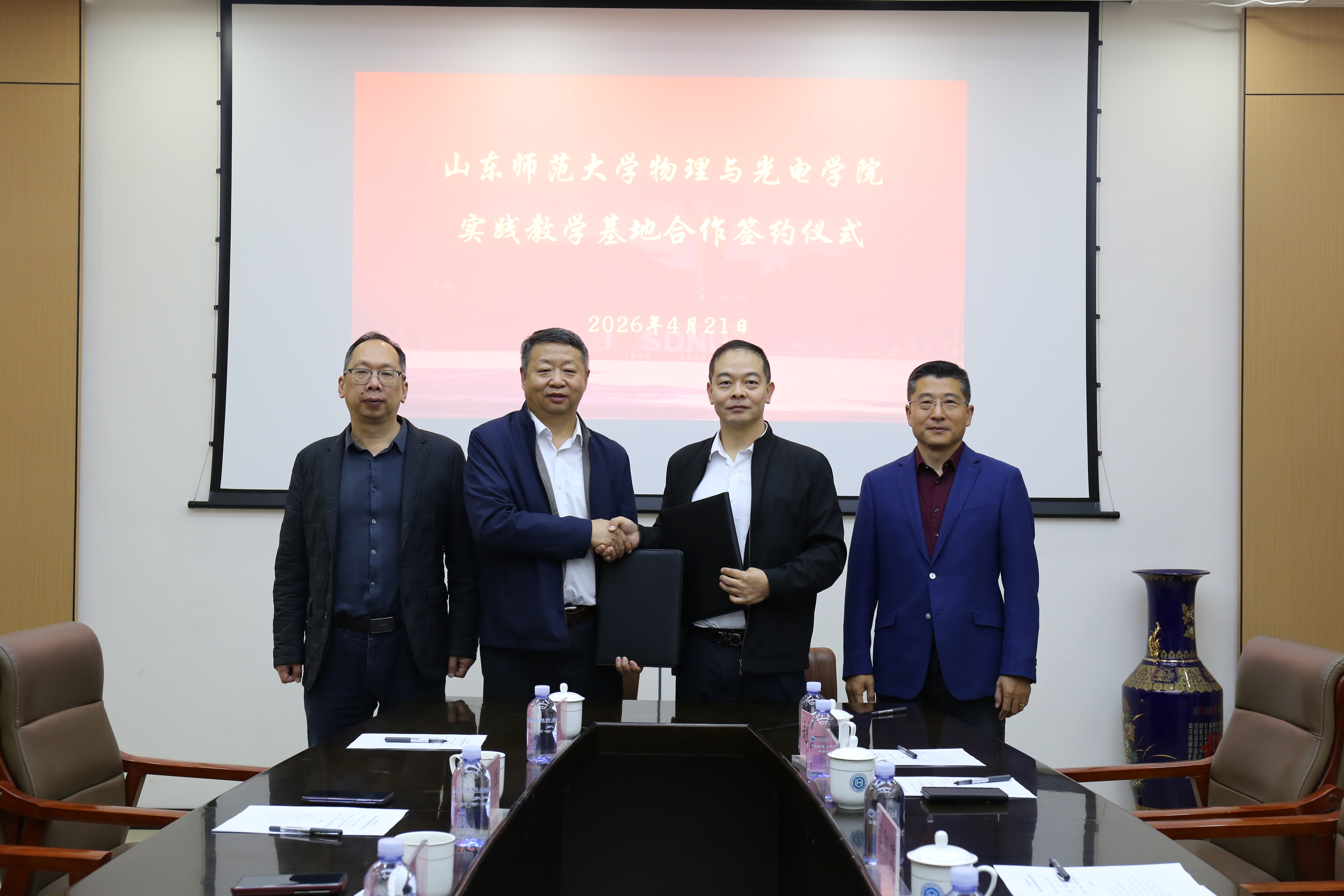 4月21日,物理与光电学院与济南晶众光电科技有限公司实践教学基地签约仪式在千佛山校区举行。济南晶众光电董事长杨舒童等企业负责人、山东师范大学副校长蔡阳健、物理与光电学院班子成员共同出席仪式。学院党委书记谢德仁主持签约仪式。