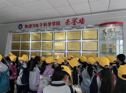 孟现美老师热烈欢迎了师生们的到来,并向大家介绍了本次研学的主要活动安排,重点强调了安全等注意事项,研学活动正式开始。首先,研究生们带领同学们参观物电学院,驻足物电学院荣誉墙,感受物电学院各个学科的科研成果和历史发展,近距离观察各种专业的物理仪器设备,体会大学的学习与科研氛围。