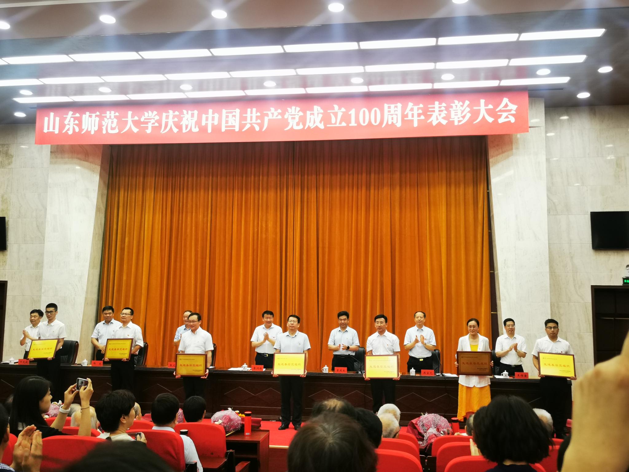6月28日上午,山东师范大学庆祝中国共产党成立100周年表彰大会在千佛山校区教学三楼报告厅隆重举行。会上,对2021年获评的优秀共产党员、优秀党务工作者、先进基层党组织和“五好三强”过硬党支部(标兵)等进行了表彰。