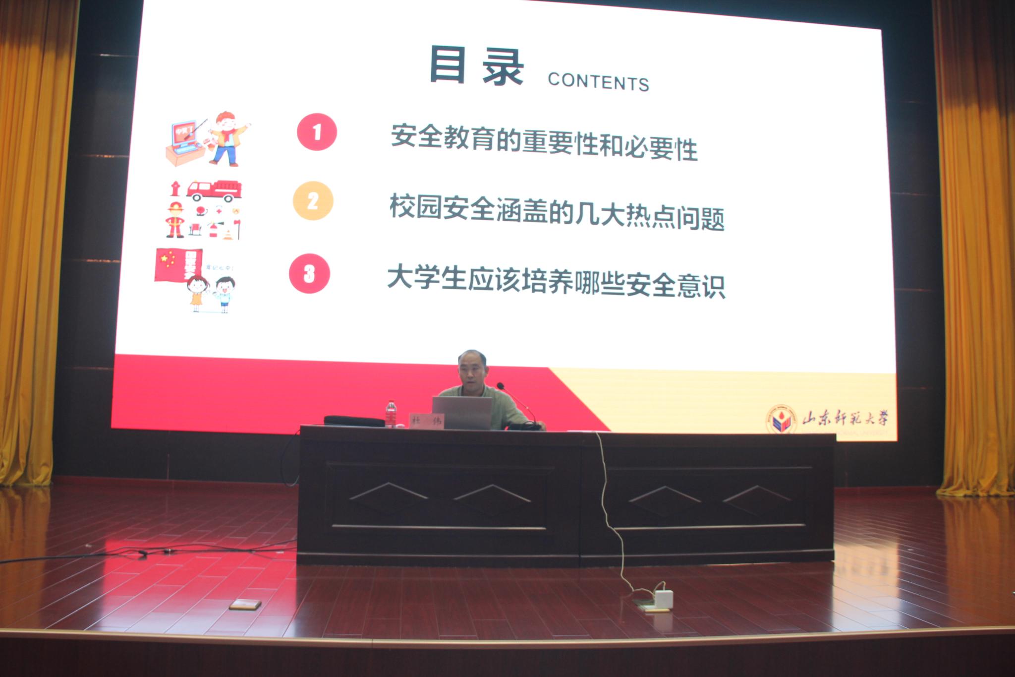 学院特聘公安处治安科副科长杜伟任法制安全教育辅导员,学生处处长李鹏健为其颁发聘书。校团委书记赵巍为学院法制安全教育宣传队授旗。领导嘉宾上台,共同在法制安全教育电子签名墙上庄重签名。最后,学生代表聂修辰带领全体学生进行“学法守法、守护安全”宣誓,在庄严的宣誓中,启动仪式落下帷幕。启动仪式结束后,法制安全教育辅导员杜伟以“安全与你我同行”为题,开展了首场法制安全讲座。
