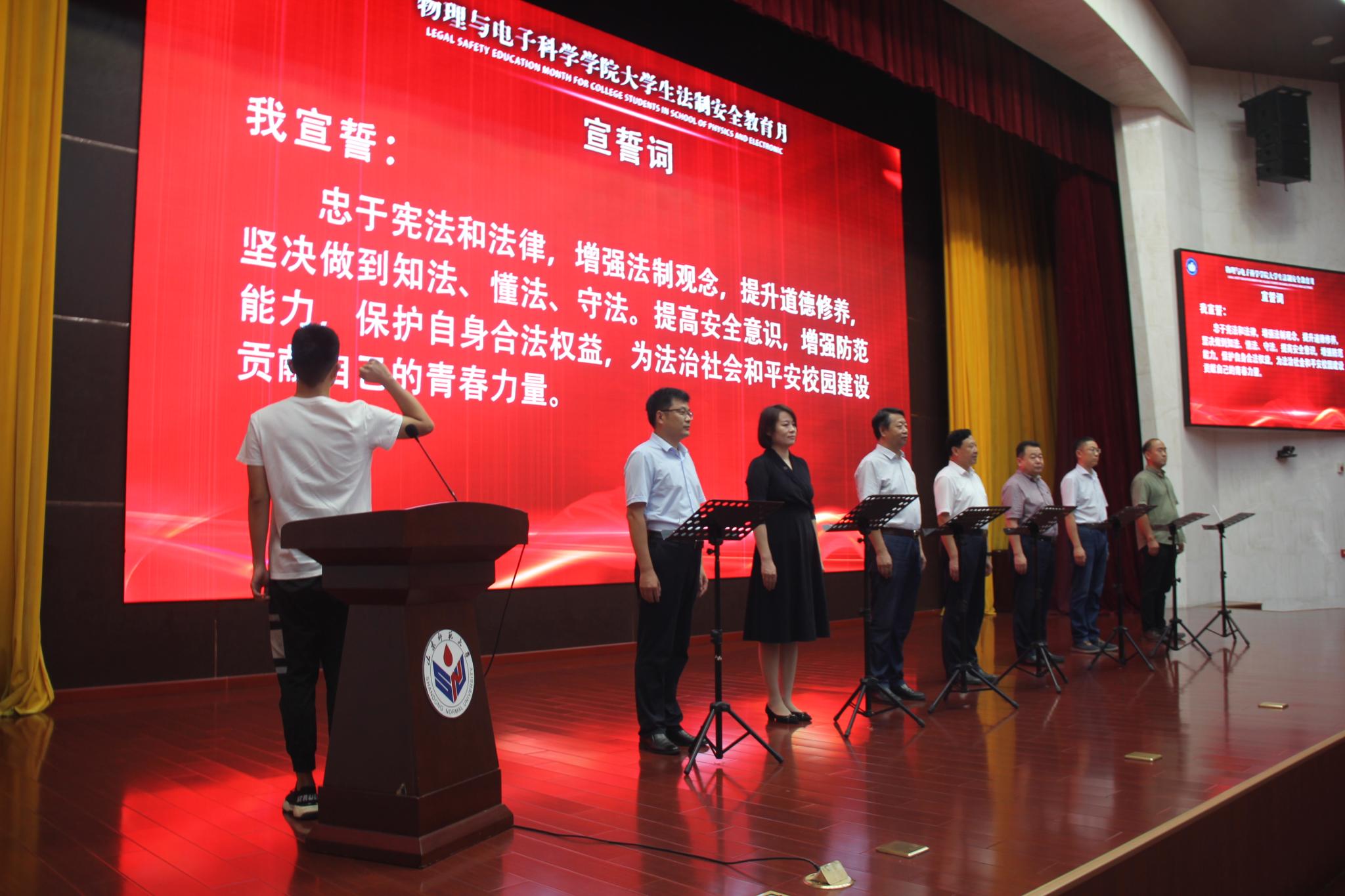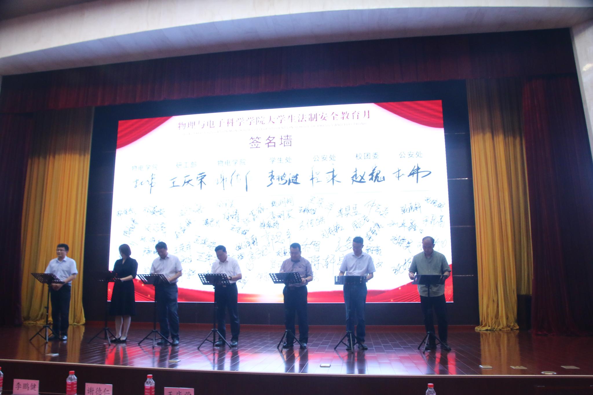 为加强大学生法制安全教育,切实提高学生的自我保护意识和能力,9月23日下午,物理与电子科学学院大学生法制安全教育月启动仪式在长清湖校区第一报告厅举行。学校学生处、公安处、校团委及研工部有关负责同志,学院部分领导及师生代表参加了本次活动。启动仪式由学院党委副书记杜伟主持。
