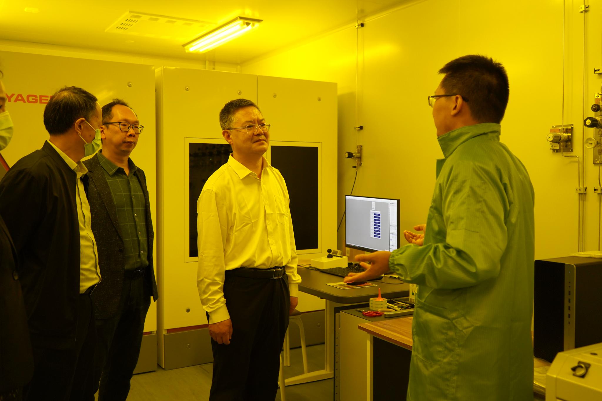 白皓一行参观了山东省光场调控工程技术研究中心、山东省光学与光子器件技术重点实验室、光电功能材料与器件实验室,分别听取了满宝元和学院院长蔡阳健教授对省重点实验室和省工程技术中心近年来在人才引进、科学研究及人才培养等方面的详细介绍,并对科研平台近段时间在建设过程中所取得优秀成果给予了充分肯定。