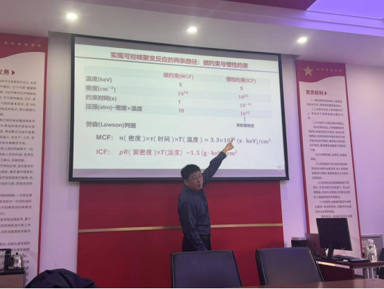 10月31日下午,上海交通大学物理与天文学院吴栋副教授应邀来我院开展学术交流,并做了题为“双锥对撞点火激光聚变:大尺度动理学数值模拟”的学术报告。李宗良教授、学院部分青年教师、研究生及本科生参加了报告会,并认真听取了报告。