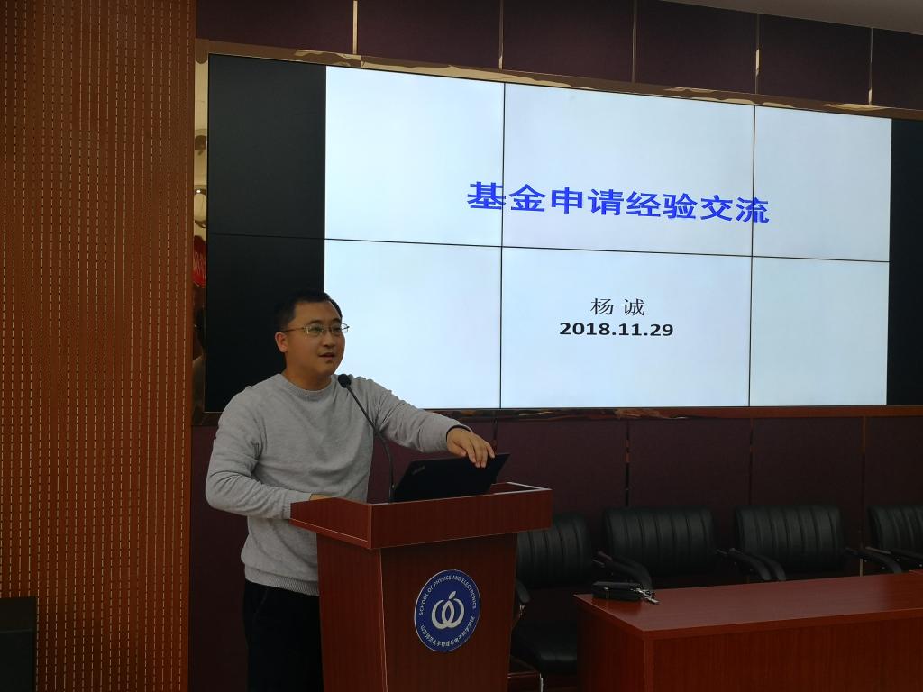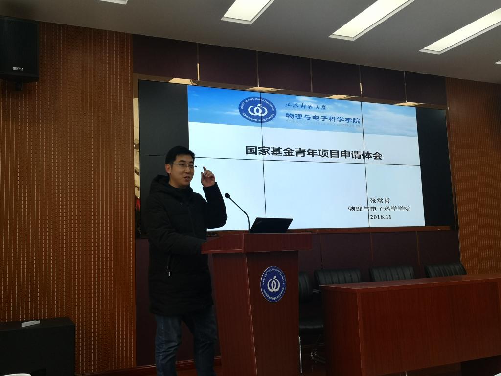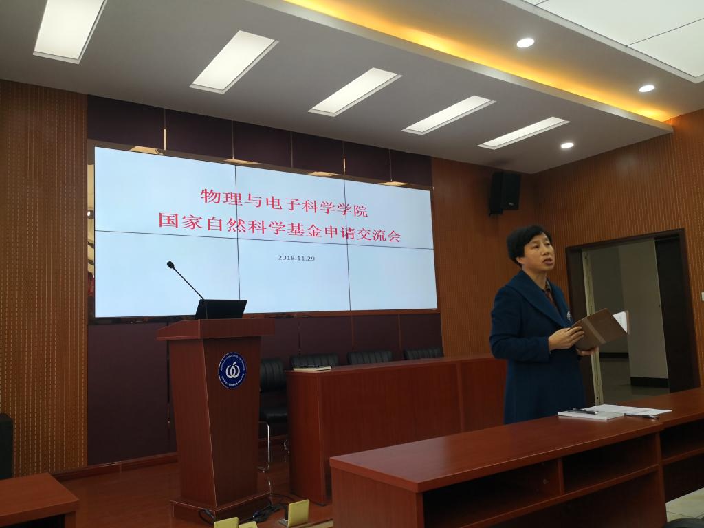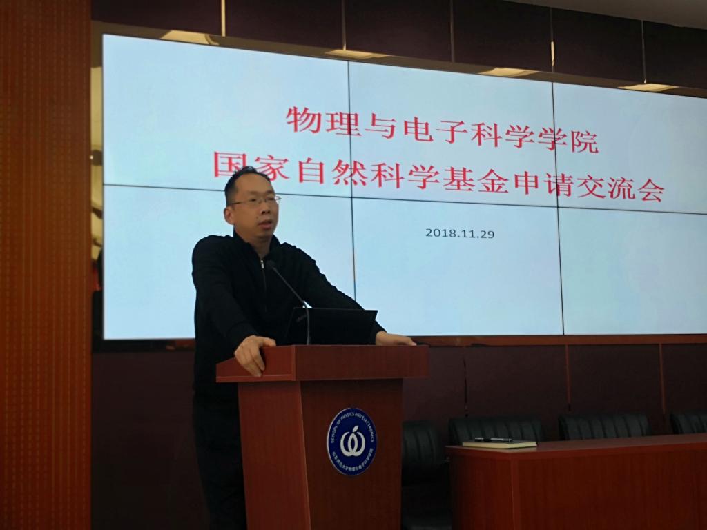 物理与电子科学学院于2018年11月29日下午2:00在长清湖校区文澜楼A区347举办了国家自然科学基金申请交流报告会。报告会由任俊峰主持,物电学院党委书记胡桂香,院长蔡阳健出席。