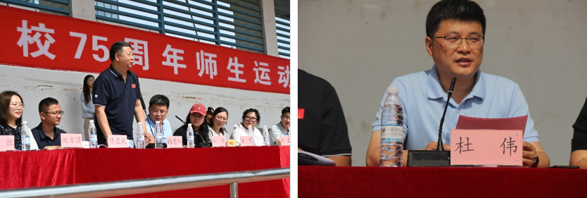 谢德仁宣布师生运动会开幕。杜伟致开幕辞,勉励师生们在赛场上团结协作、顽强拼搏,以此为契机,加强体育锻炼,以更健康的体魄、更昂扬的姿态、更优秀的成绩,为建校75周年献礼。