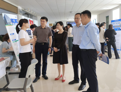 5月15日上午,物理与电子科学学院在长清湖校区文澜楼举办“物毕启航,职引未来”2025届毕业生校园专场招聘会。本次活动吸引20多家用人单位、200余名毕业生参与。学校研究生院副院长孙峰、学生工作部副部长张萌、学院党委副书记杜伟、副院长宋玉志来到招聘会现场,与用人单位和求职学生亲切交流。