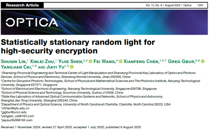 近日,山东师范大学蔡阳健教授团队在国际著名期刊《Optica》(影响因子8.5)上发表题“Statistically stationary random light for high-security encryption”的研究论文,创新性地将光场统计特性应用于高安全光信息加密。山东师范大学博士生蔺淑琴为论文的第一作者,上海交通大学教授陈险峰、美国北卡罗莱纳大学夏洛特分校Greg Gbur教授、蔡阳健教授和余佳益副教授为论文共同通讯作者。 在现代互联网背景下,信息的安全存储和传输极为重要。...