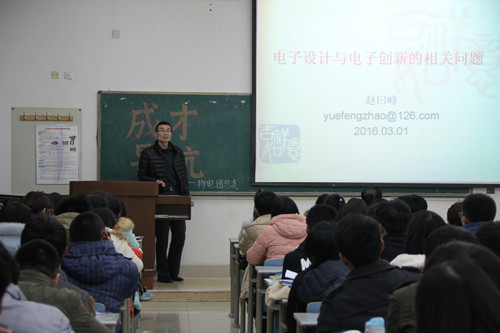 为加深同学们对专业知识的了解,备战电子设计大赛,3月1日,物理与电子科学学院在综合教学楼C区208教室举办“电子设计与电子创新的相关问题”成才导航报告会。