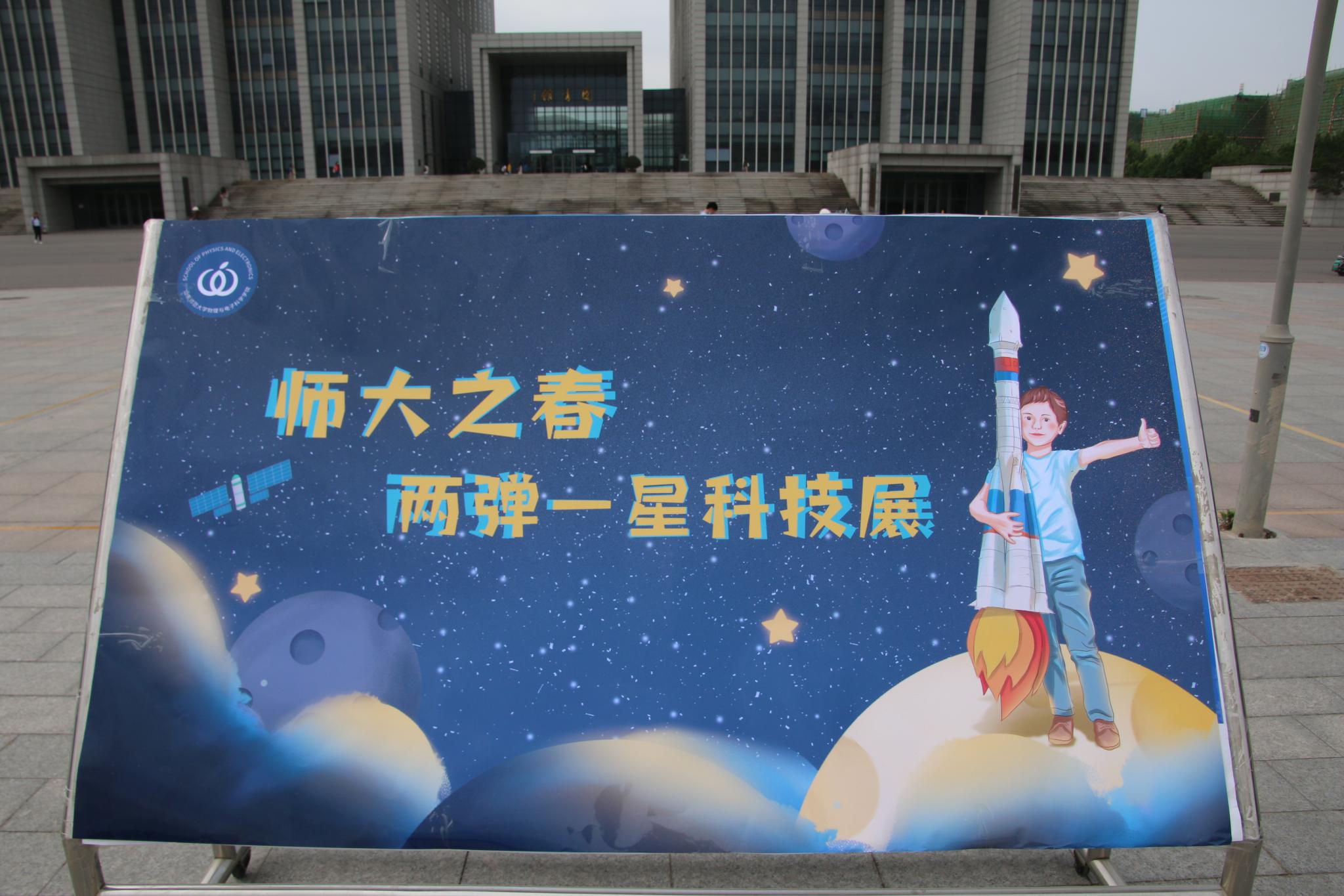 为讲好两弹一星故事、弘扬两弹一星精神,促进理论知识转化为实践操作,5月9日,物理与电子科学学院“师大之春——两弹一星科技展”水火箭大赛于天颐广场隆重举行,活动吸引三百余人参加。本次大赛分为初赛和决赛两部分进行。在上午的初赛中,96组参赛小组共分为九轮十一轨道,在主持人与志愿者的主持下依次有序进行水火箭发射。每组均有两次发射机会,当火箭通过40米水平距离后,即有资格进入决赛。赛前,各组成员在比赛轨道内...