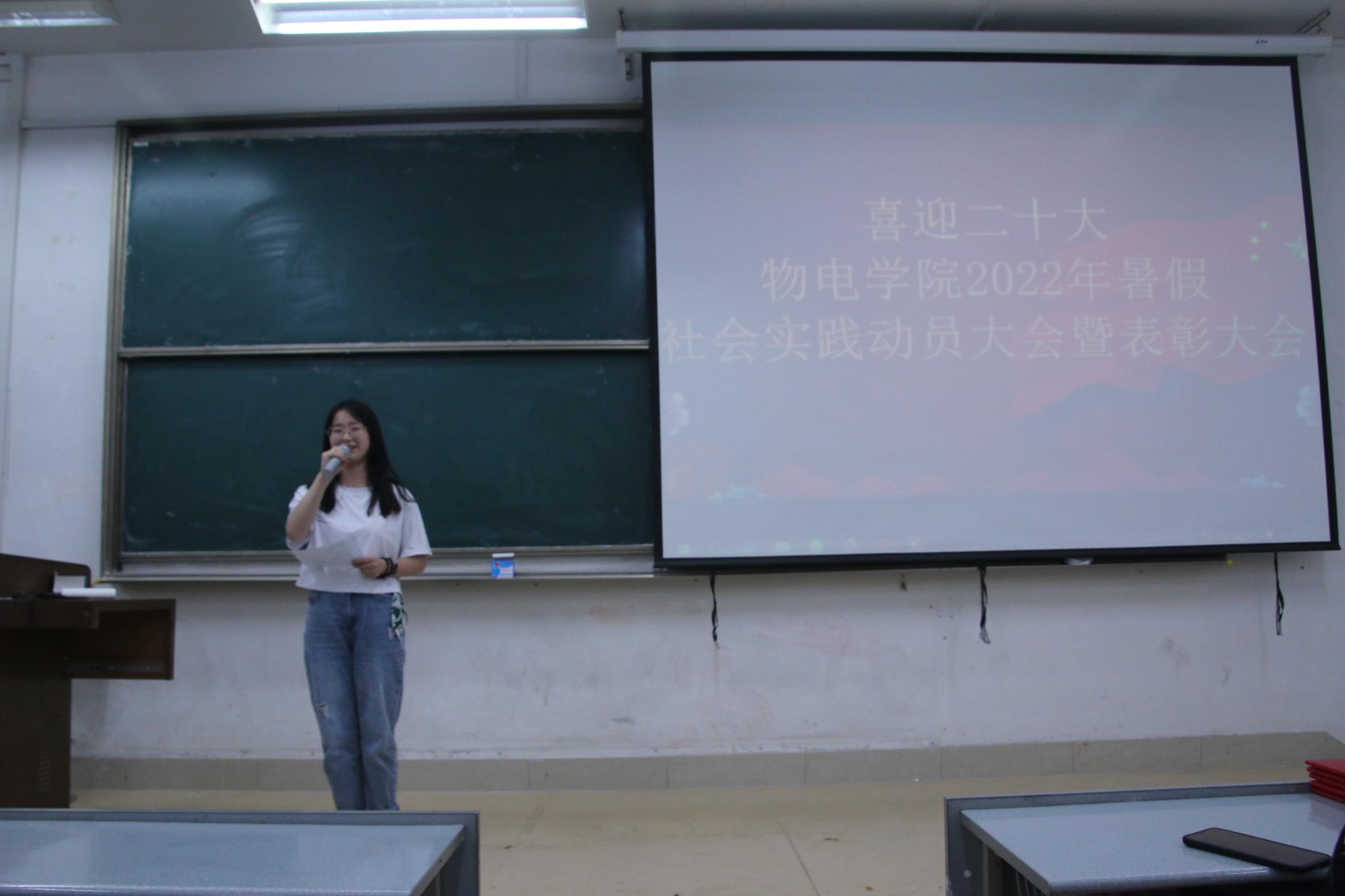 为丰富学生暑假生活,鼓励同学们在实践中彰显青年担当,5月30日中午,物理与电子科学学院于文渊楼C区121教室举办2022年暑假社会实践动员大会暨表彰大会,会议由王莺霏做主讲人,辅导员姚方圆、史睿,学生会相关部门负责同学及百余名学生参加本次活动。会议之初,主讲人通过简短的视频展示往年优秀社会实践活动的相关影像,随后,学院社团实践部各位成员借助精美PPT,配合流利熟练的讲说,对本次实践活动进行详细的阐释。基于社...