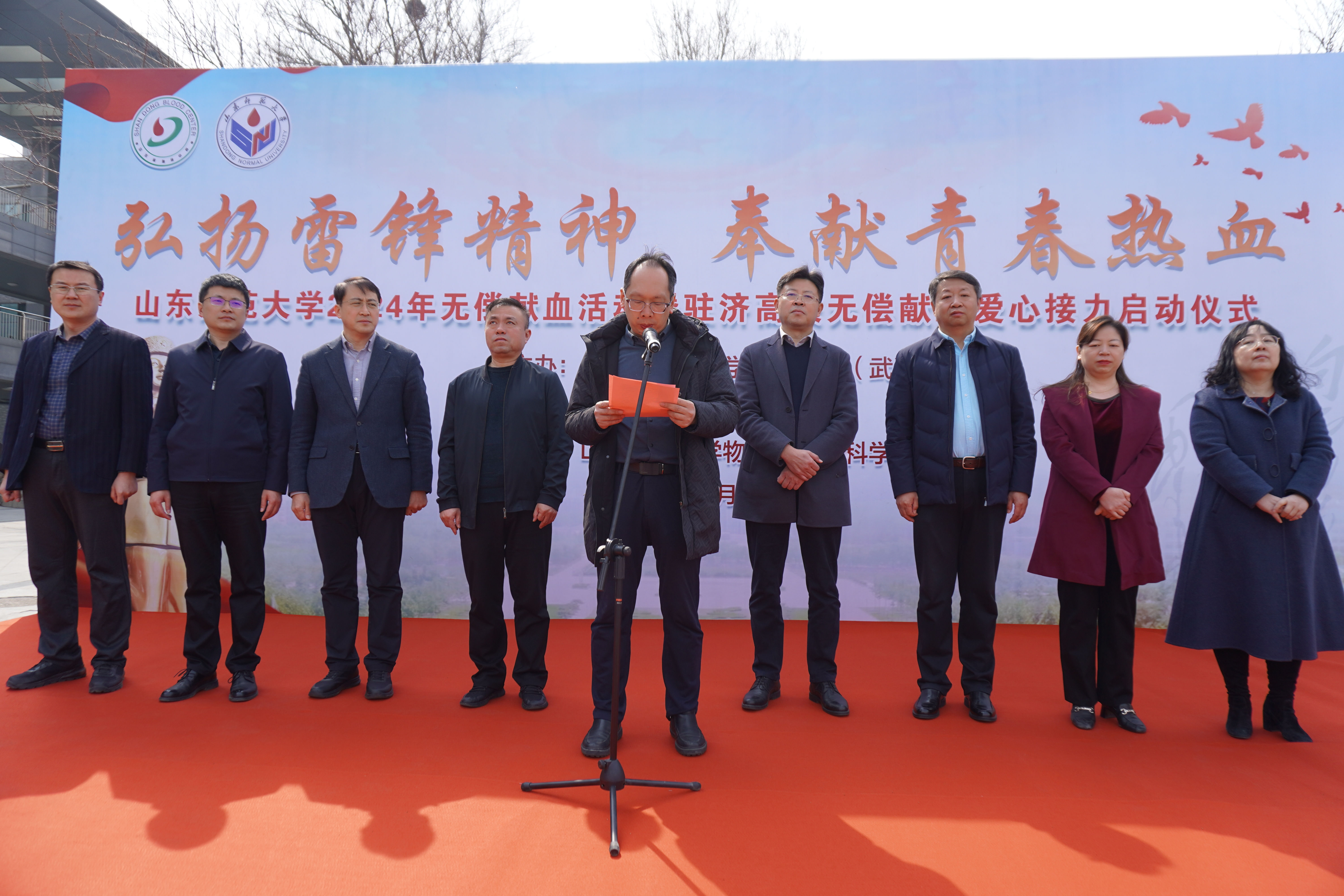 3月13日中午,物理与电子科学学院承办“弘扬雷锋精神,奉献青春热血”——无偿献血活动暨驻济高校无偿献血爱心接力启动仪式。山东师范大学副校长、物理与电子科学学院院长蔡阳健,共青团山东省志愿者行动指导中心主任陈宝军,山东省卫生健康委医政医管处三级调研员战涛,山东省血液中心副主任尹鲲,山东省献血办公室主任王淑荣,山东师范大学学生工作部部长吕晓勇、副部长王超,物理与电子科学学院党委书记谢德仁、党委副书记杜伟出席启动仪式。...