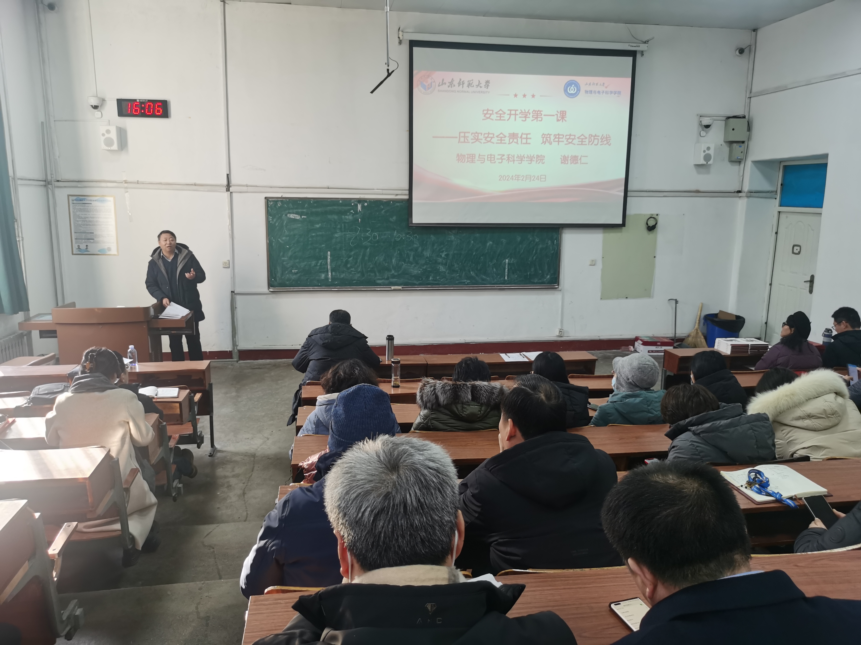 为进一步贯彻落实习近平总书记关于学校安全工作的重要指示精神,增强学院师生新学期安全意识,提高校园师生安全防范意识,物理与电子科学学院于开学初组织开展“安全开学第一课”活动。学院党委书记谢德仁、副书记杜伟、各年级辅导员为全体师生授课,帮助师生树立正确的安全观念,增强安全防范意识,为新学期的顺利开展创造一个安全、和谐的学习生活环境。2024年2月24日,党委书记谢德仁根据学校的安排部署,给全体教职工讲授了以“...
