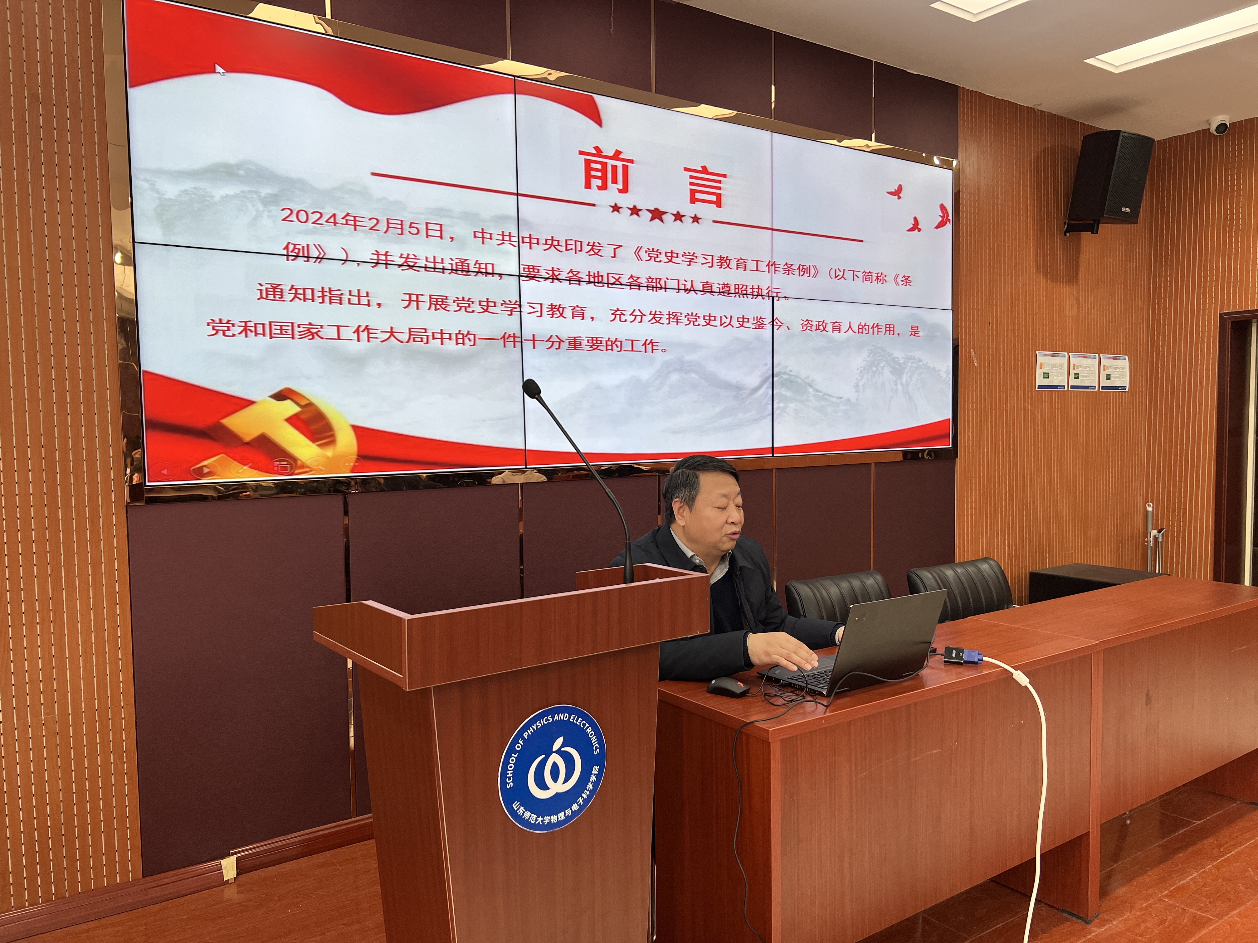 3月7日,物理与电子科学学院在文澜楼F347报告厅举办 “开学第一课”,学院党委书记谢德仁主讲,学院全体学生党支部委员,各班班长、团支部书记近100人参加了学习。党的历史是最生动、最有说服力的教科书。谢德仁围绕中共中央印发的《党史学习教育工作条例》展开解读,指出党史学习要常态化,制度化,做到学史明理、学史增信、学史崇德、学史力行。他分别从制定《条例》的背景、意义、《条例》制定的总体考虑、《条例》的主要框架和内容、...
