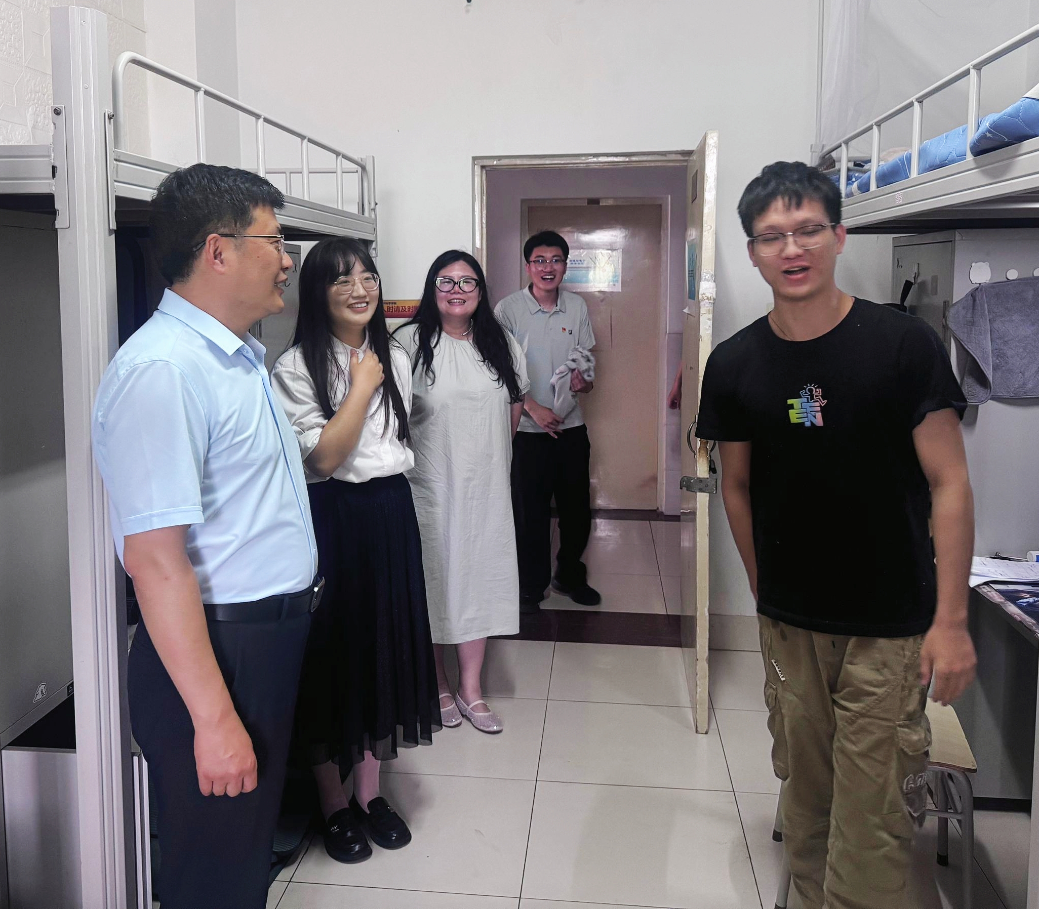 为切实做好端午节期间校园安全稳定工作,营造安全、和谐的校园环境,5月30日,学院党委副书记杜伟,副院长宋玉志、张超,辅导员刘亭、张雨辰一同深入学生宿舍和实验室,开展节前安全检查工作,全力保障学生度过一个平安、愉快的假期。在学生宿舍,杜伟一行逐间走访,对宿舍卫生状况、用电安全以及违规电器使用情况进行了细致入微的检查。每到一间宿舍,杜伟都认真查看各个角落,不放过任何一个可能存在安全隐患的地方。他反复叮嘱同学们:...
