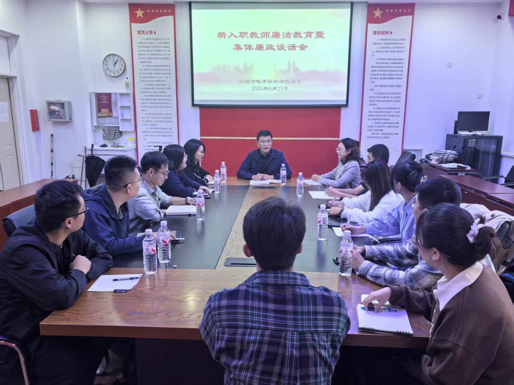 为深入贯彻落实全面从严治党要求,切实加强党风廉政建设,引导新入职教师系好职业生涯“第一粒扣子”,9月23日,物电学院组织召开新入职教师廉洁教育暨集体廉政谈话会。学院党委副书记、纪委书记杜伟主持会议并讲话。会议指出,开展新入职教师廉政谈话,既是落实制度的必然要求,也体现了学院党委对青年教师的政治关怀和爱护。新入职教师学识渊博、朝气蓬勃,是学院教师队伍的新鲜血液和未来发展的希望,他们的到来为学院学科建设、...