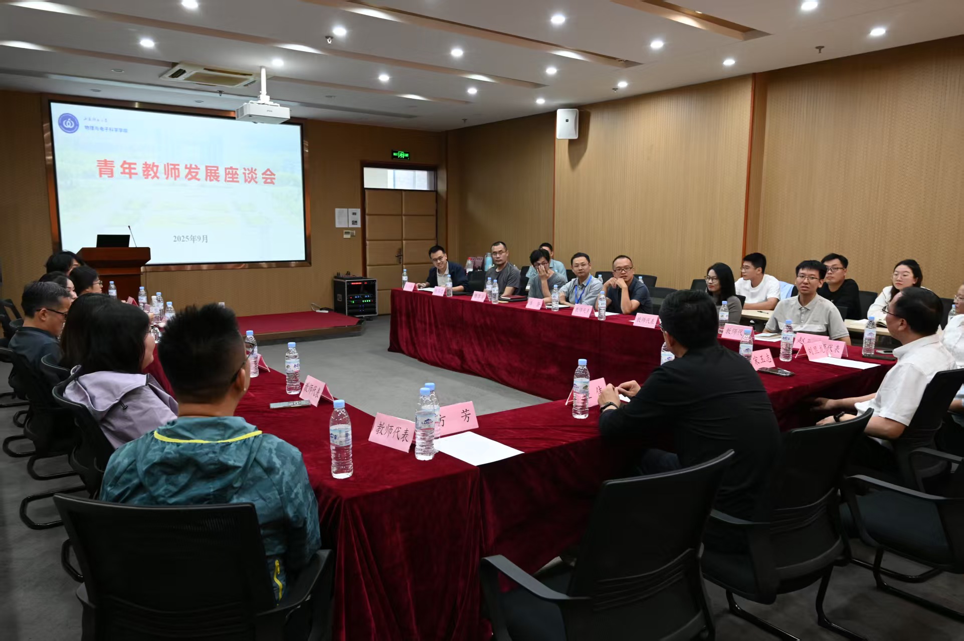 为充分了解年轻教师发展状况,搭建教师之间交流平台,9月26日下午,物理与电子科学学院于文渊楼D301举办青年教师发展座谈会,党委书记谢德仁,党委副书记杜伟、副院长宋玉志、学术副院长刘显龙、团委书记方芳及十余名近两年入职青年教师参加会议,会议由谢德仁主持。围绕着青年教师发展主题,谢德仁与青年教师就职业规划、发展诉求、科研遇到的困难进行了讨论。谢德仁首先总结了学院近些年在科学研究、学科发展、平台建设等方面取得的成绩。...