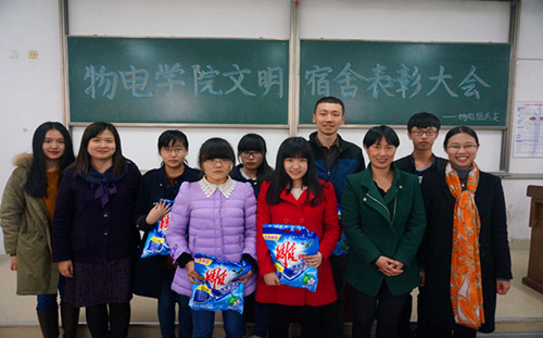 为发扬学院优良传统,督促同学改进卫生工作,4月8日中午,物理与电子科学学院于长清湖校区综合教学楼B区242教室举行“文明宿舍”表彰大会。