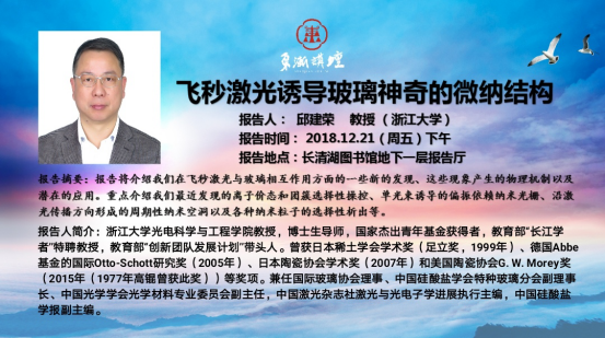 “东渐讲坛”第十讲:飞秒激光诱导玻璃神奇的微纳结构 邱建荣教授(浙江大学)