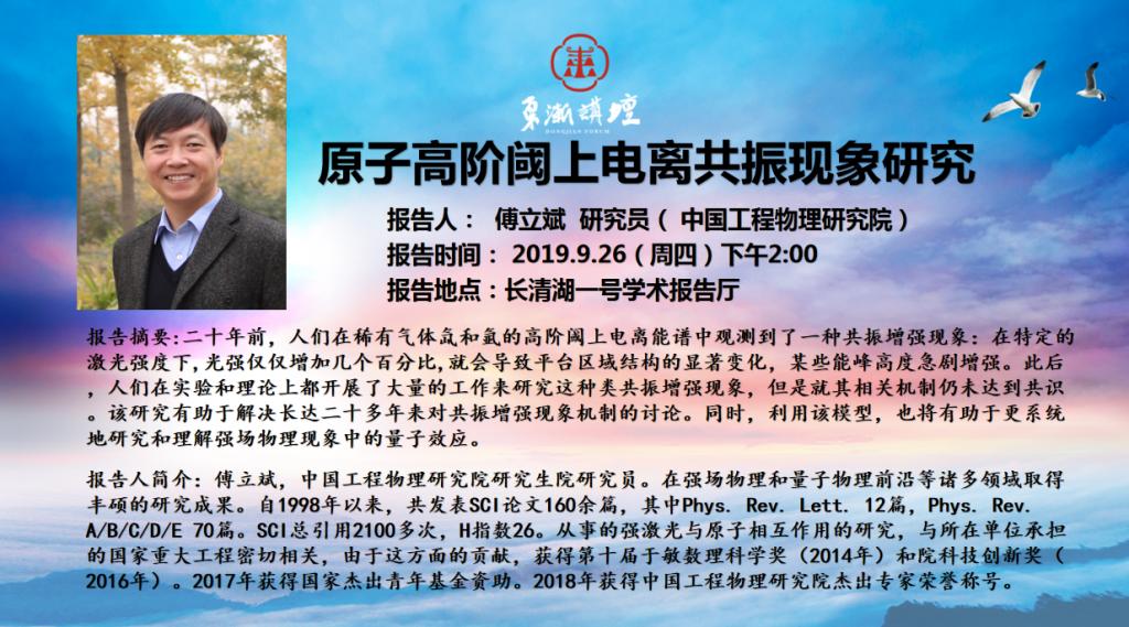 “东渐讲坛”第十八讲:原子高阶阈上电离共振现象研究 傅立斌研究员(中国工程物...