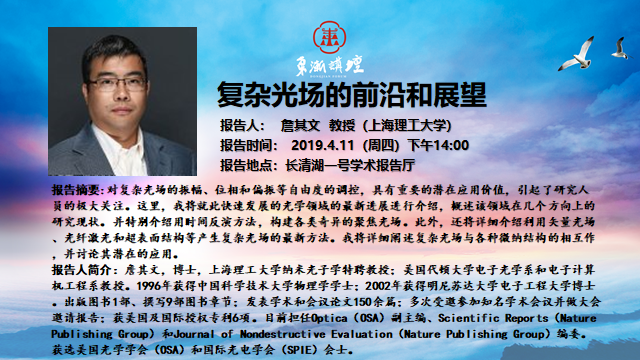 “东渐讲坛”第十二讲:复杂光场的前沿和展望 詹其文教授(上海理工大学)