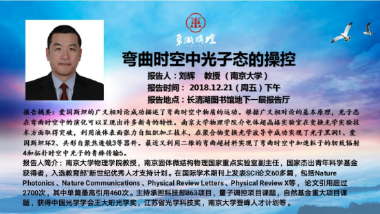 “东渐讲坛”第十一讲:弯曲时空中光子态的操控 刘辉教授(南京大学)