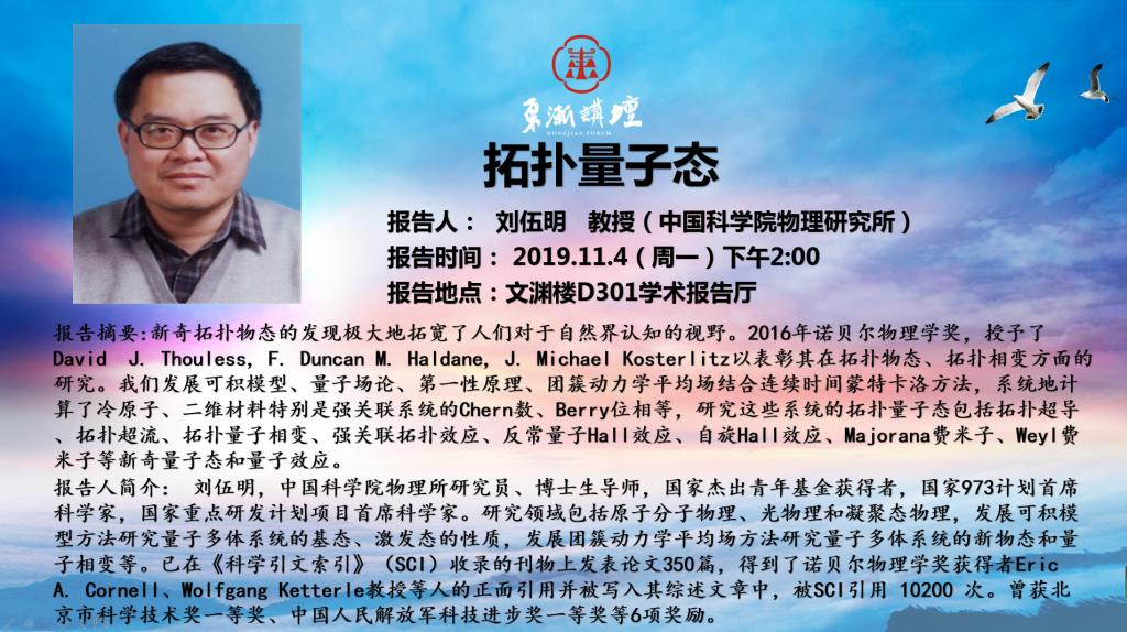 “东渐讲坛”第十九讲:拓扑量子态 刘伍明教授(中国科学院物理研究所)