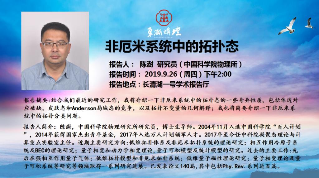 “东渐讲坛”第十七讲:非厄米系统中的拓扑态 陈澍研究员(中国科学院物理所)
