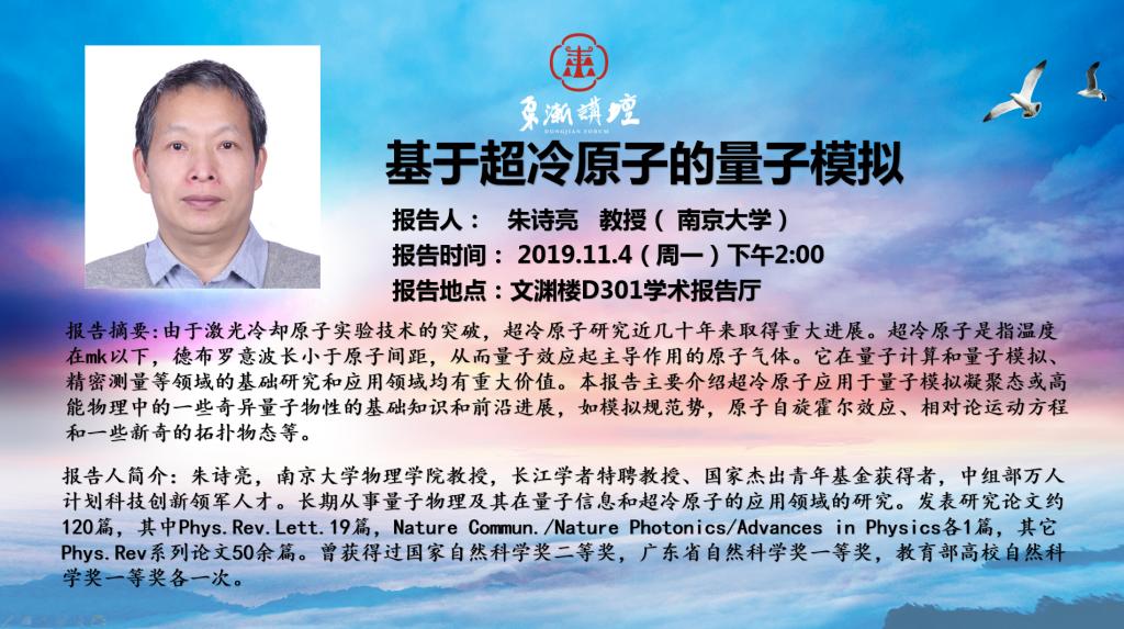 “东渐讲坛”第二十一讲:基于超冷原子的量子模拟 朱诗亮教授( 南京大学)