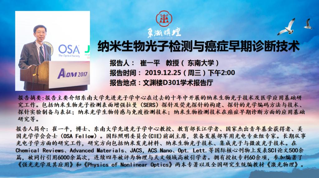 “东渐讲坛”第二十二讲:纳米生物光子检测与癌症早期诊断技术 崔一平教授(东南...